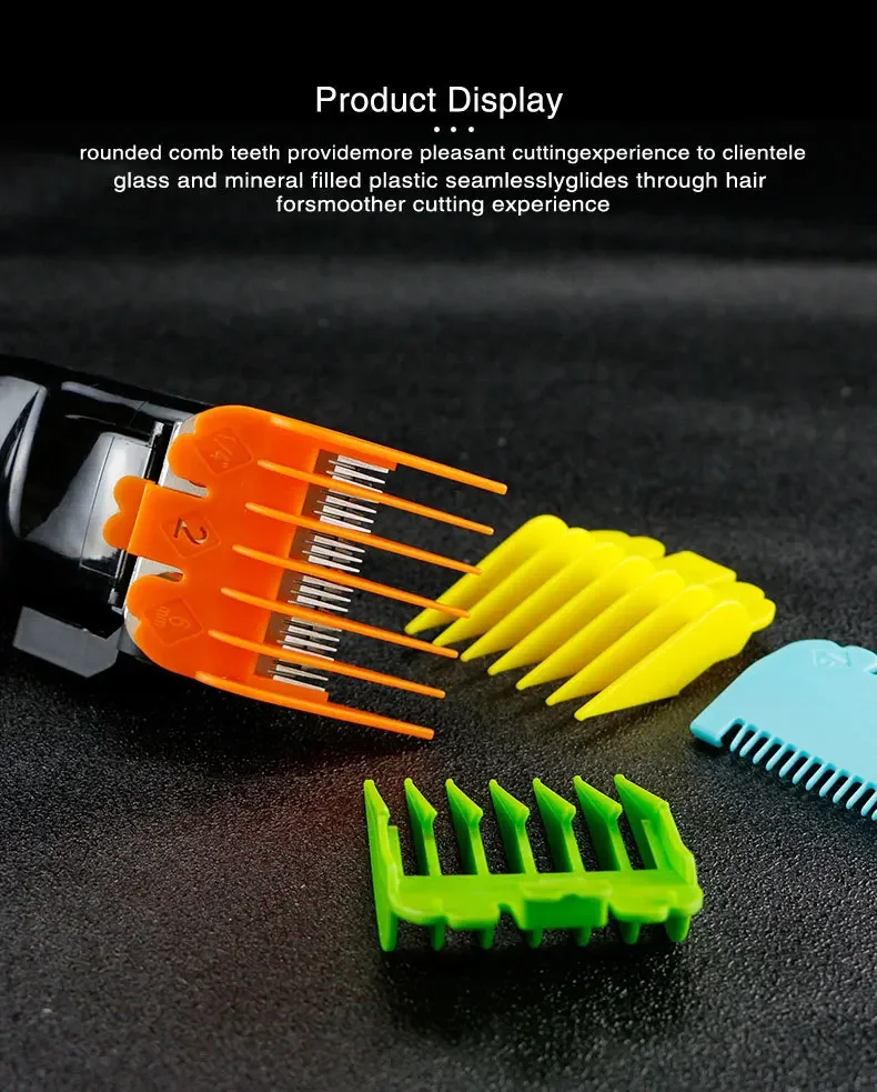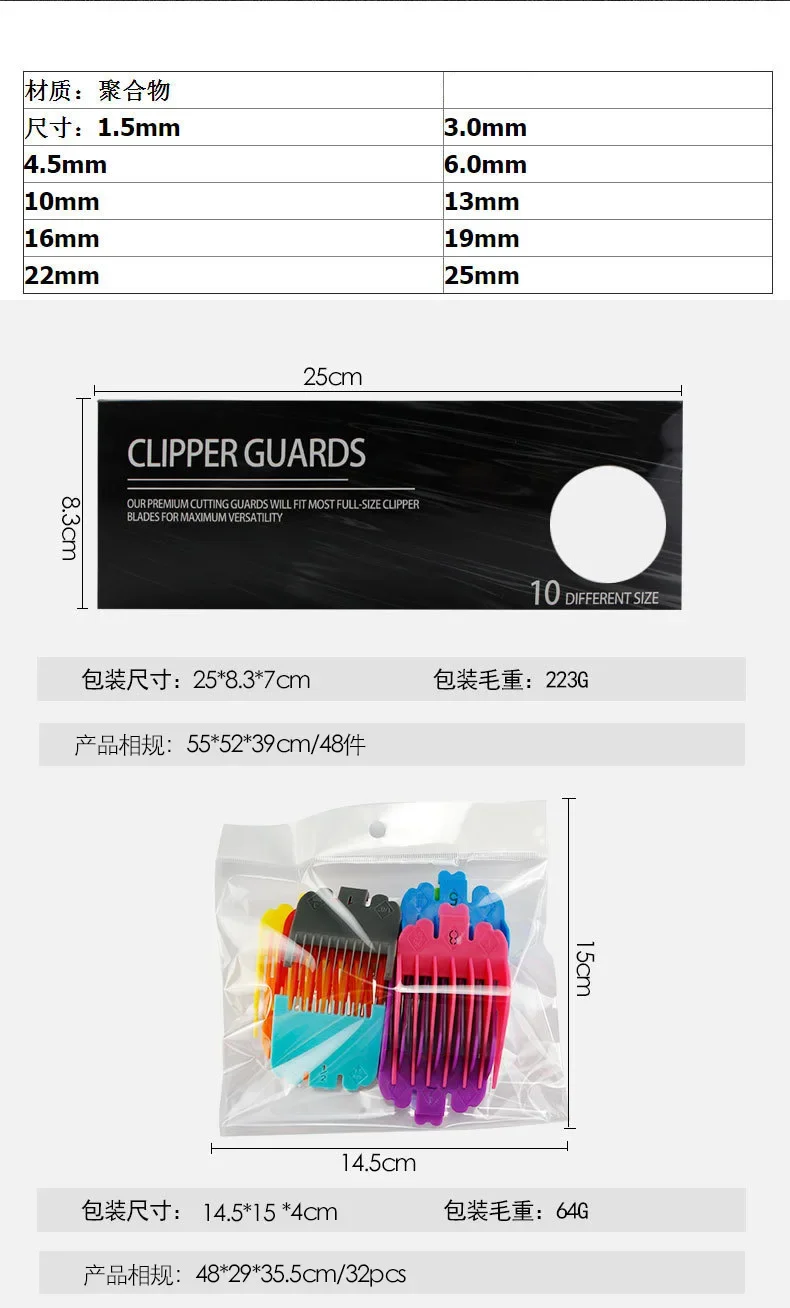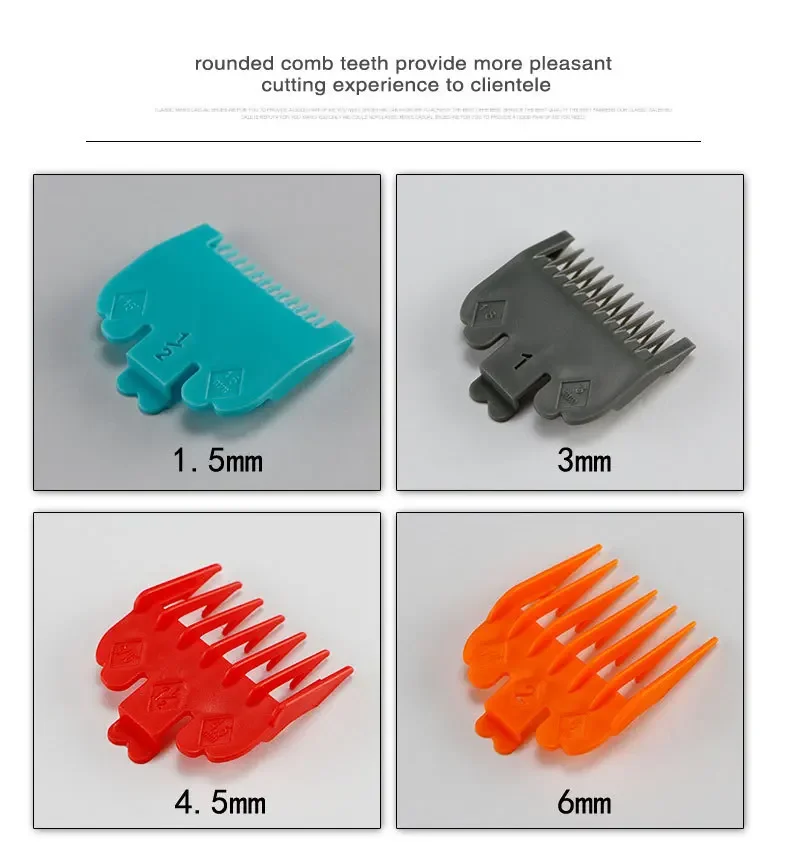 Get 10 combs, each with a different color and a different cutting length for a full range of options