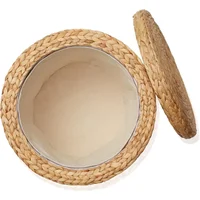 - Acacia wood feet: Designed with Acacia wooden feet, which ensure stability and durability for years to come. The wood’s natural grain patterns and warm tones beautifully contrast with the water hyacinth weave, adding to the overall charm of this piece.
