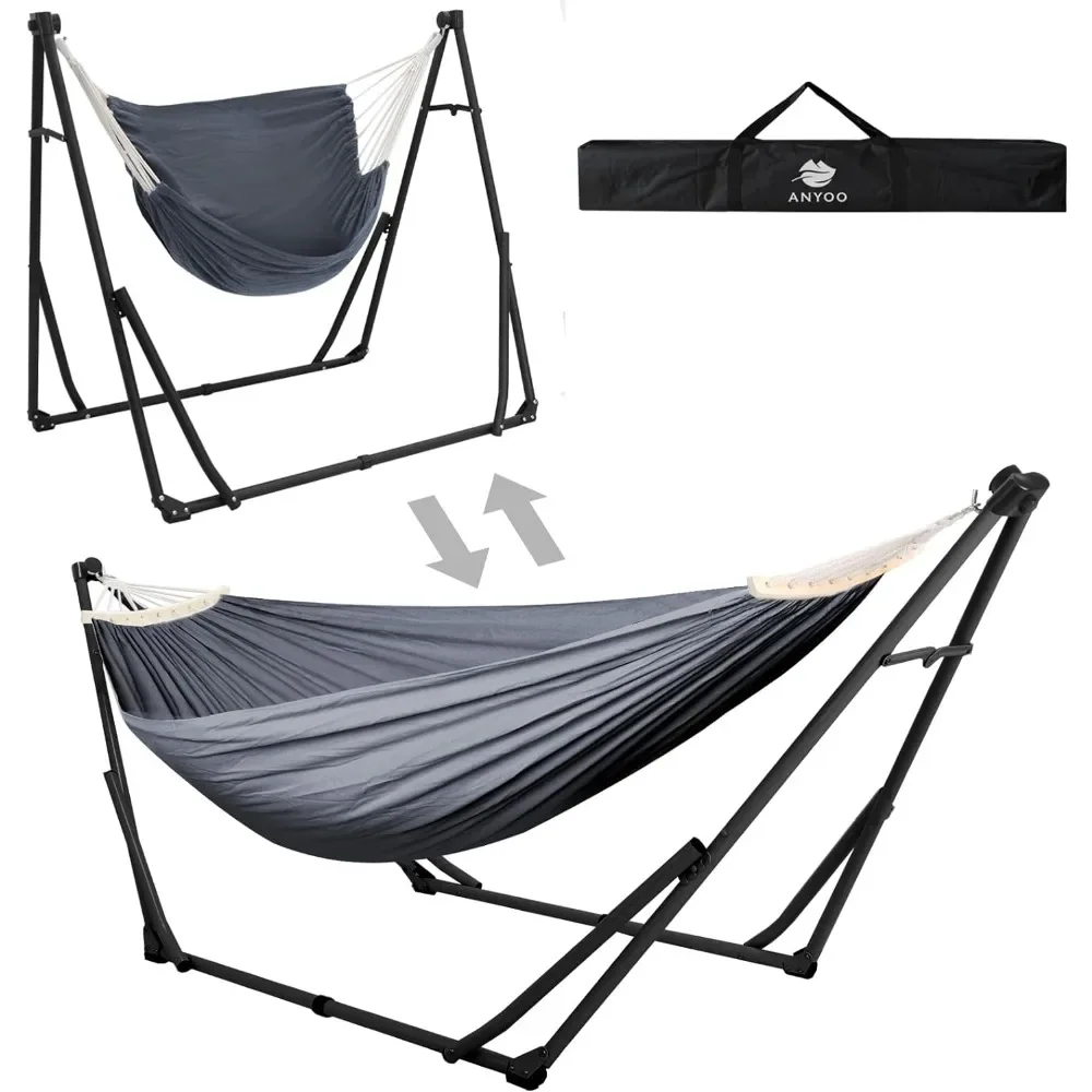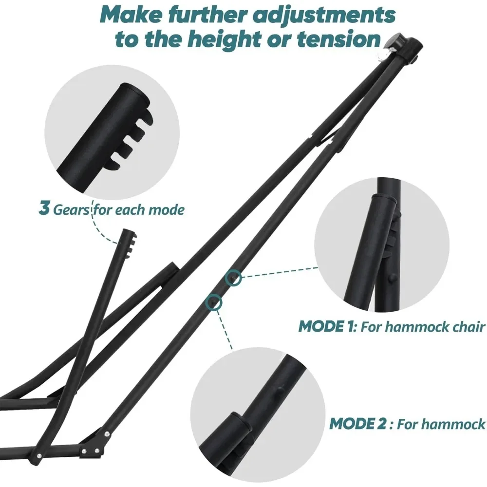 - Free Transformation and Sturdy: 2 in 1 adjutable hammock stand, it can be twisted easily from hammock stand to hammock chair stand.The heavy duty hammock stand is made from rust-resistant powder-coated steel The hammock stand is powder-coated which makes the steel rust-resistant and protected against wind and rain. There are also plastic feet on the bottom to prevent scratches on your deck.