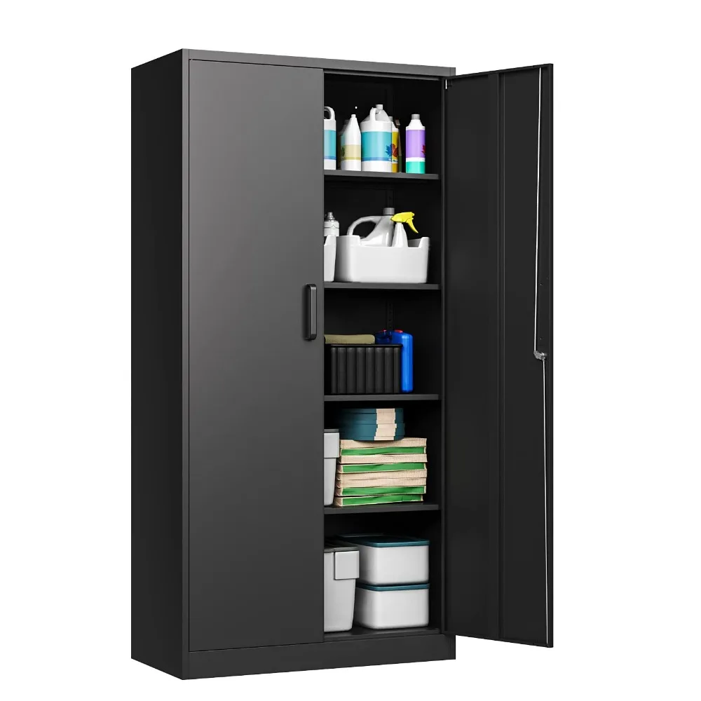 - Large Capacity Storage Cabinet- 70.87”H x 31.5”W x 15.7”D Size steel storage cabinet with 5 adjustable shelves to hold items of different sizes such as office document supplies, heavy household kitchen items or garage tools. The modern home style design appearance is ideal for use in homes, offices, garages, schools, shops, warehouses or other commercial spaces.