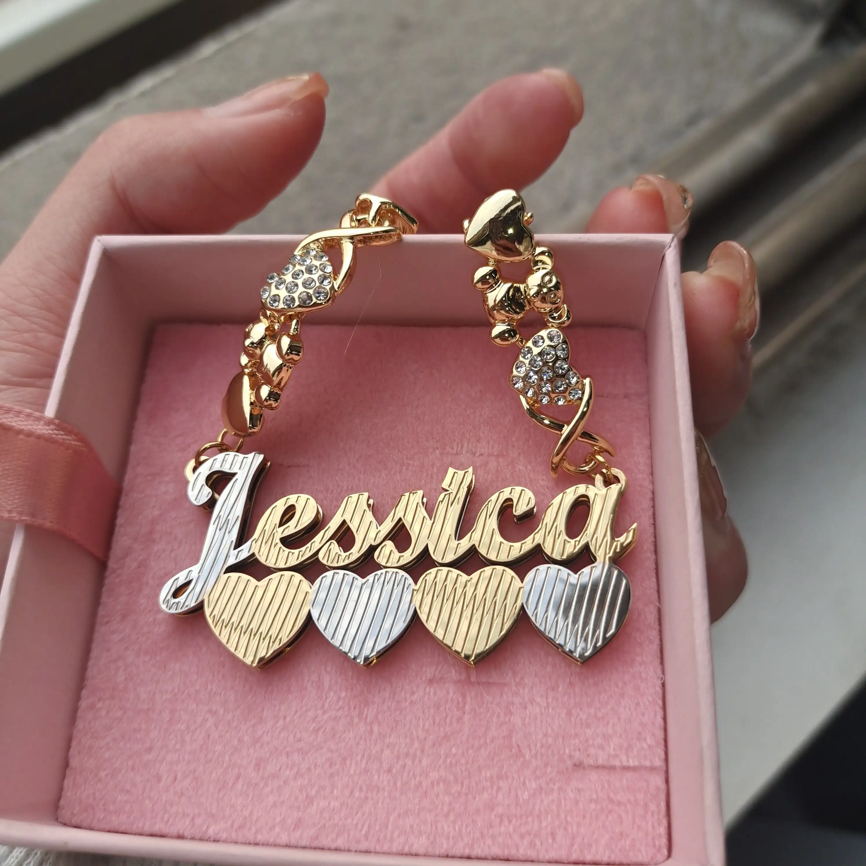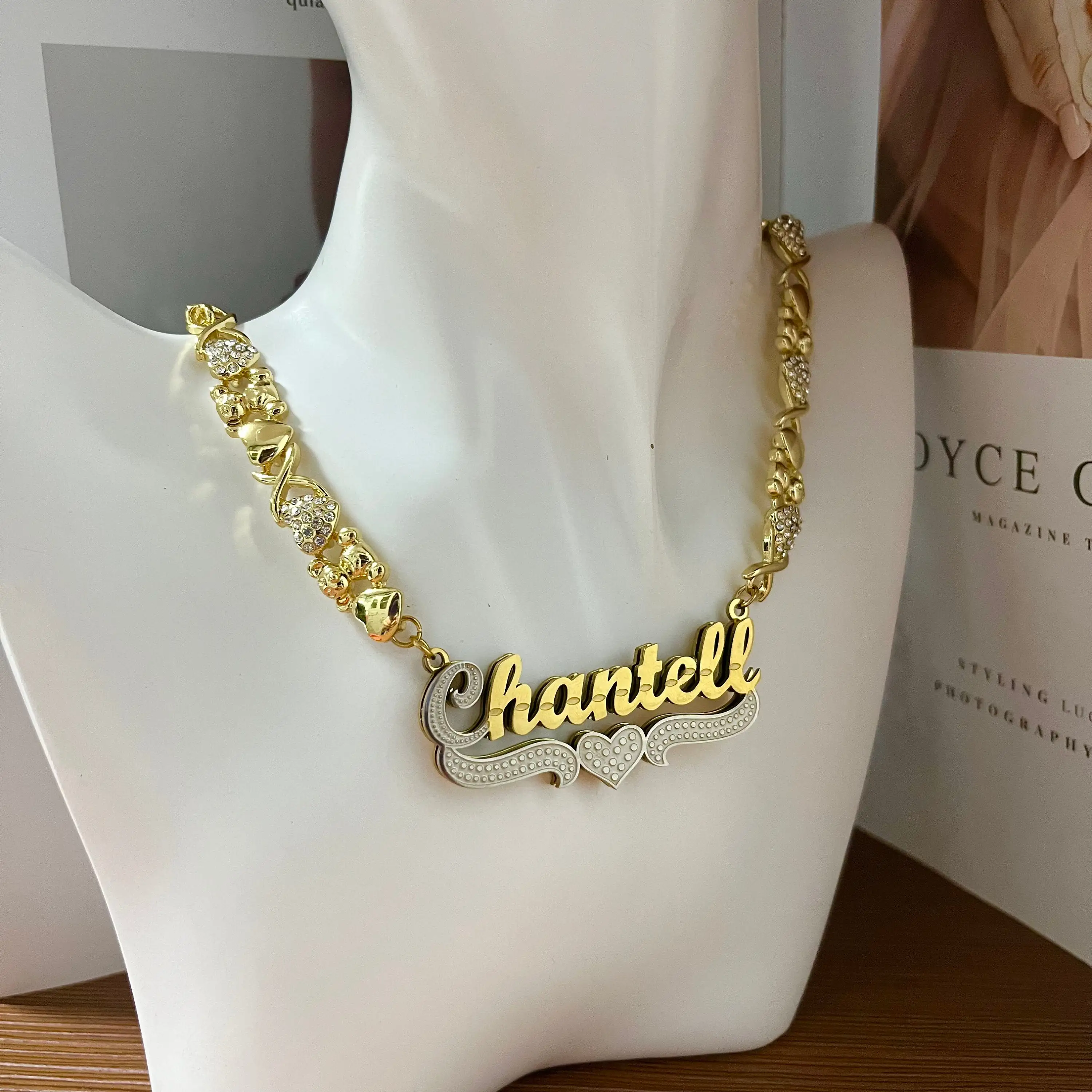 6 reviews for 3D Double Plated Name Necklace Custom Name Necklace with Teddy Bear Personalized Nameplate Pendant Chain Gift For Women Kids