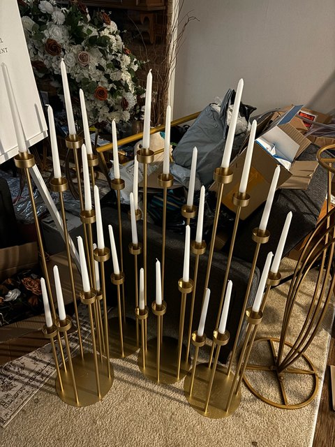 Super simple to put together! They come with plastic candle sleeves that you must use LED candles for, so I didn’t use them and instead had to purchase glass sleeves. But they’ll be beautiful in my wedding!!