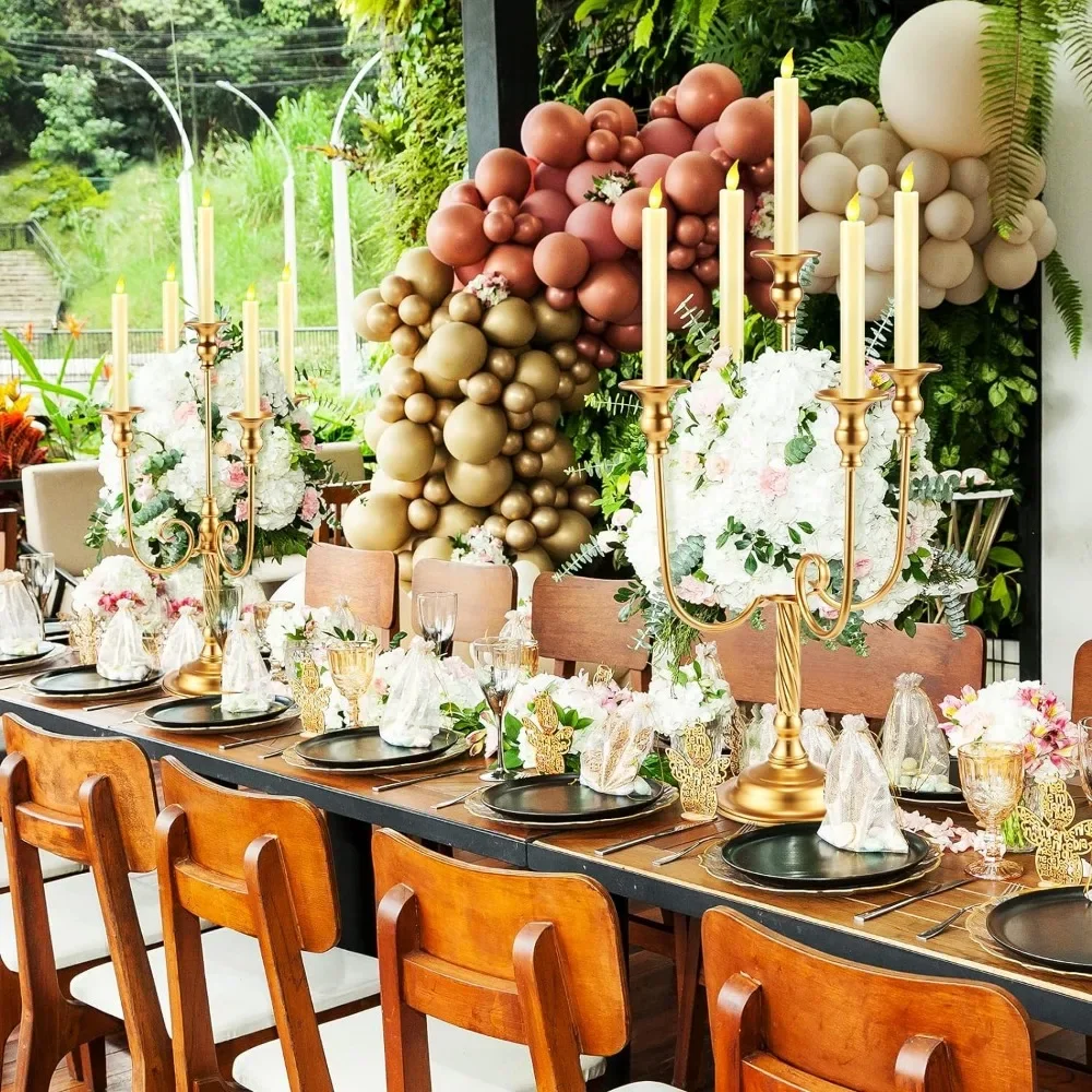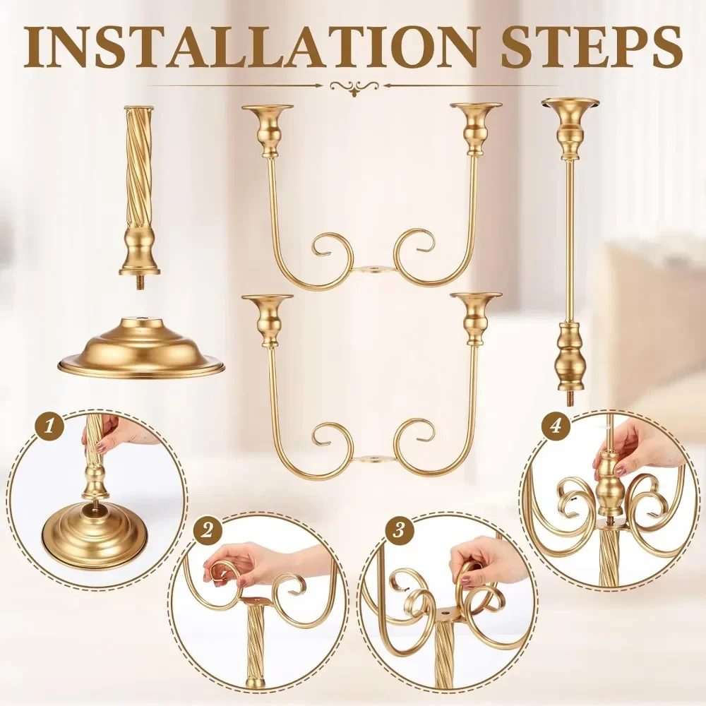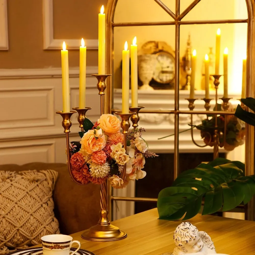 - Suitable Size: this gold candle holder is about 19.7 inches high and 9.45 inches wide, suitable for 0.87 inch taper candles or flameless taper candles; Follow the pictures for simple assembly to use, no additional tools required