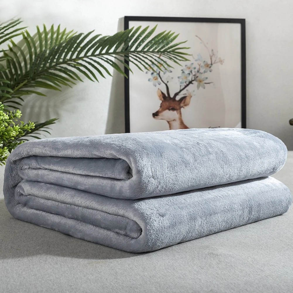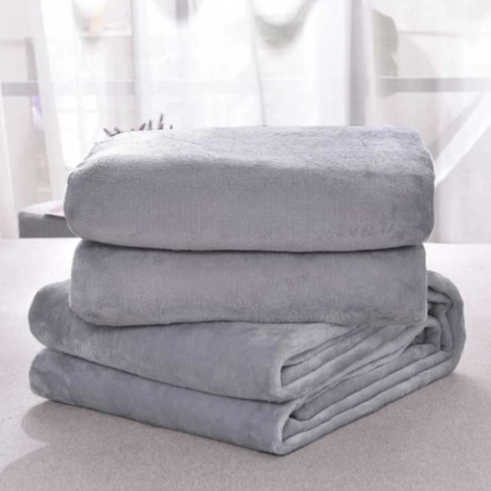 Grey Flannel Fleece Blanket Solid Color Simple Bedspread Blanket Lightweight for Adult Children Home Office