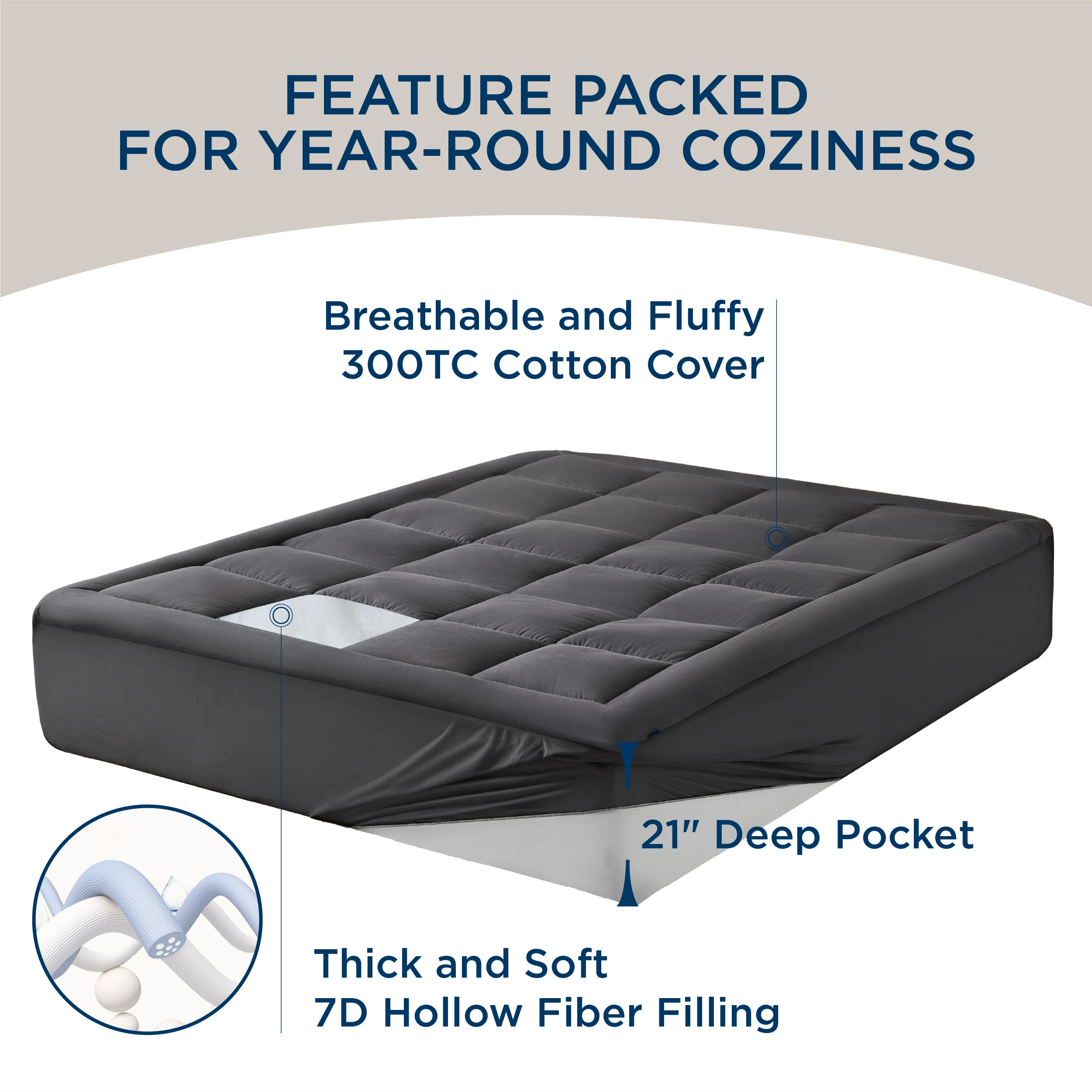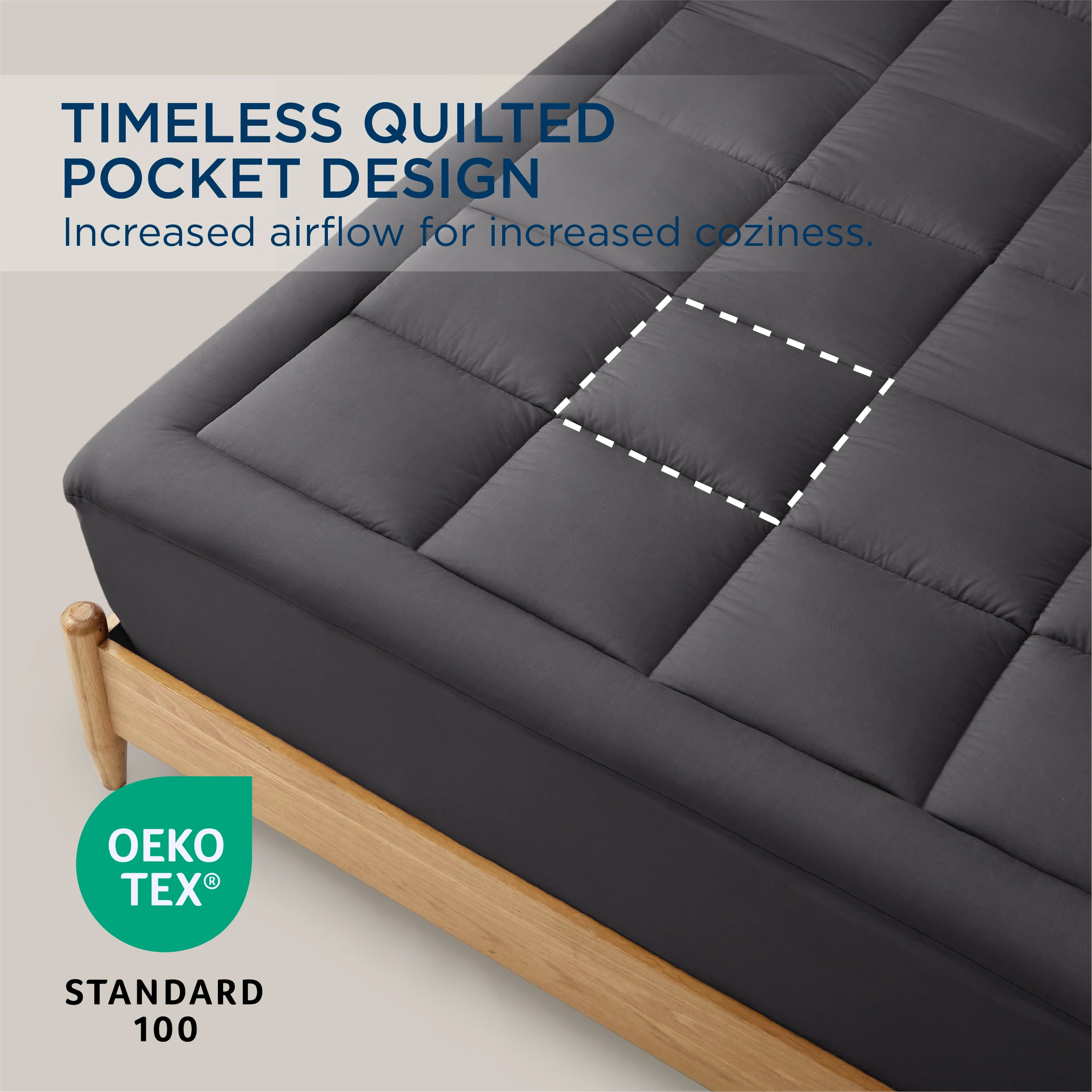 Optimal Comfort: This mattress pad features a cloud-shaped quilted design to provide evenly distributed support that disperses the body’s pressure. All designed for a restorative night’s sleep.