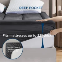 Deep Pocket: This mattress cover can be easily stretched up to 21″. The all-around elastic edging effortlessly secures the mattress pad in place without moving or shifting.