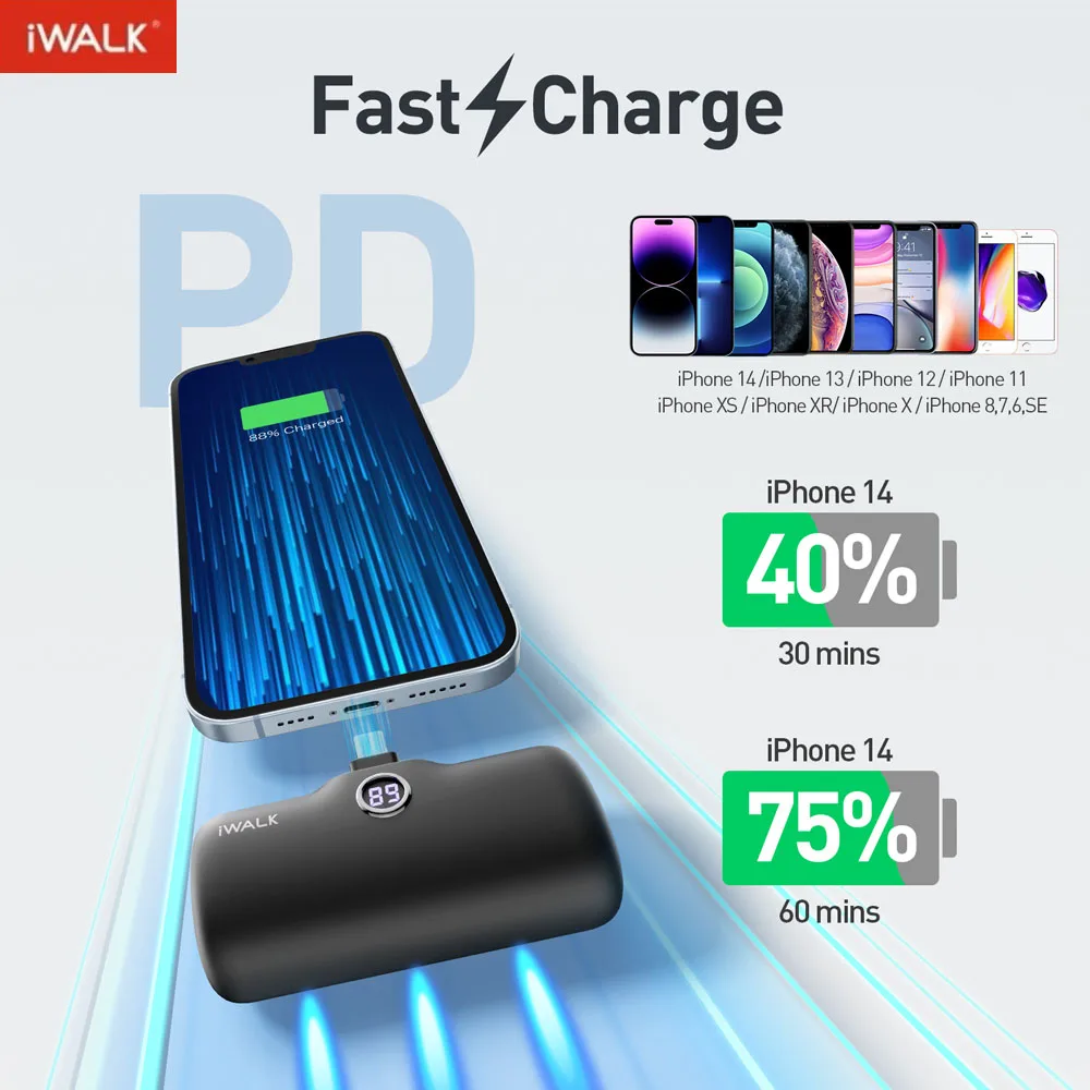 iWALK Power Banks Portable Battery Bank Fast Charge Charger for Iphone Powerbank 4800mAh External Mobile Ultra Mini Banks,Black