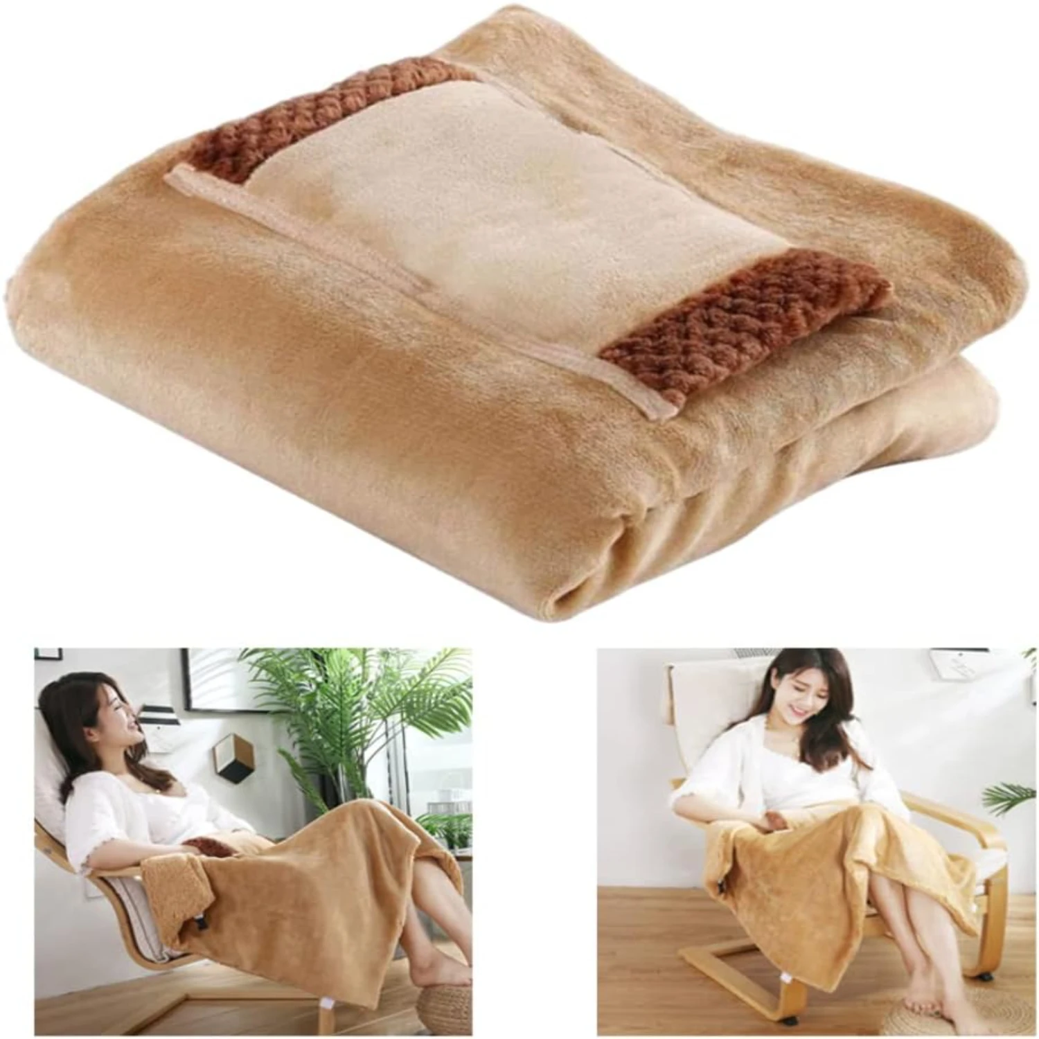 3. Stay toasty with our Lap Heated Throw Blanket with Hand Warmer Pocket, featuring a stylish camel color and modern design. This throw blanket is perfect for keeping warm during the winter months, with a convenient USB cable included for easy charging. Machine washable and perfect for snuggling up on the couch.