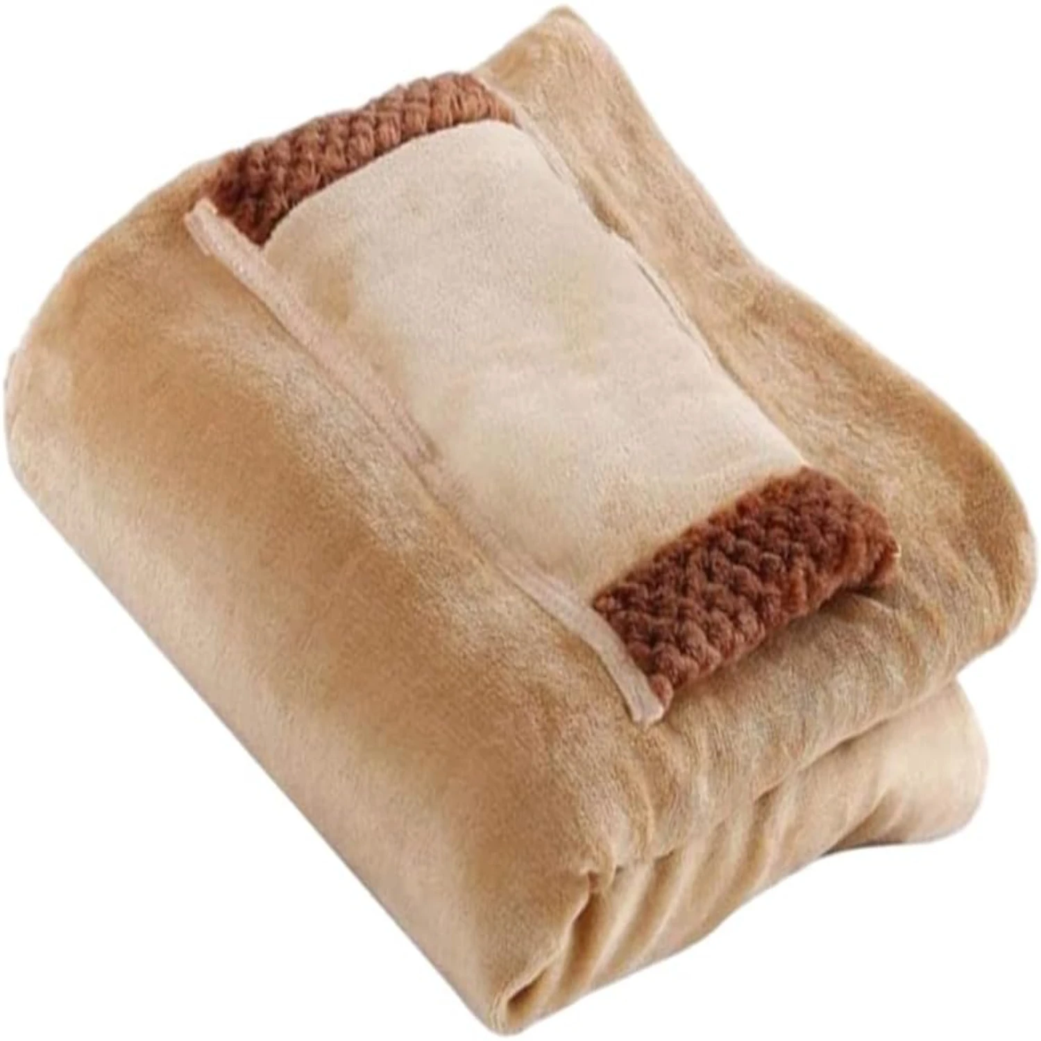 3. Snuggle up in style with our Washable Lap Heated Throw Blanket with Hand Warmer Pocket in a chic camel color. This modern throw blanket is the perfect size for cozying up on the couch or taking on camping trips. With a convenient USB cable included, you can easily recharge the blanket for endless warmth.