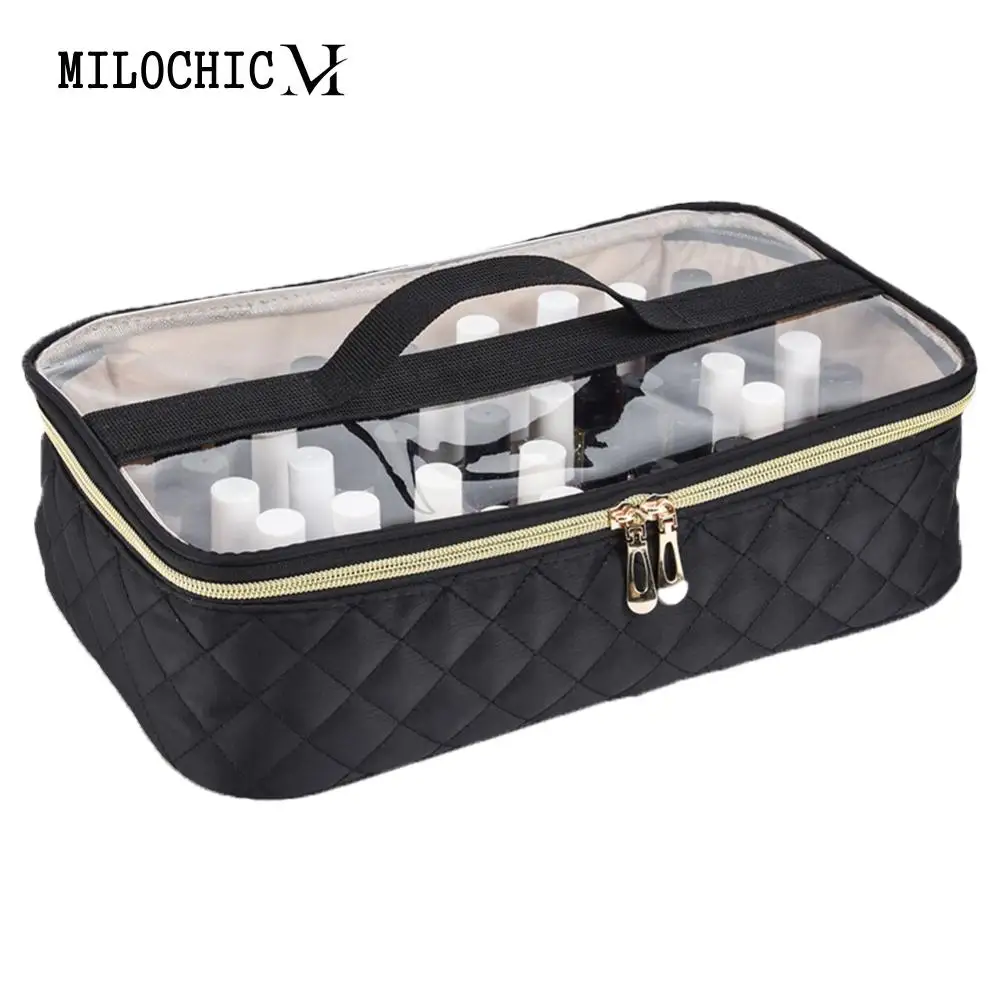 Nailpolish Organizer Bag Removable Cosmetic Handbag with Zipper Portable High-Capacity Multifunctional Beauty Accessories