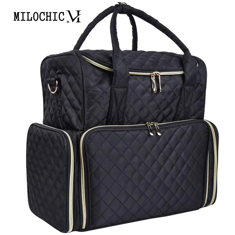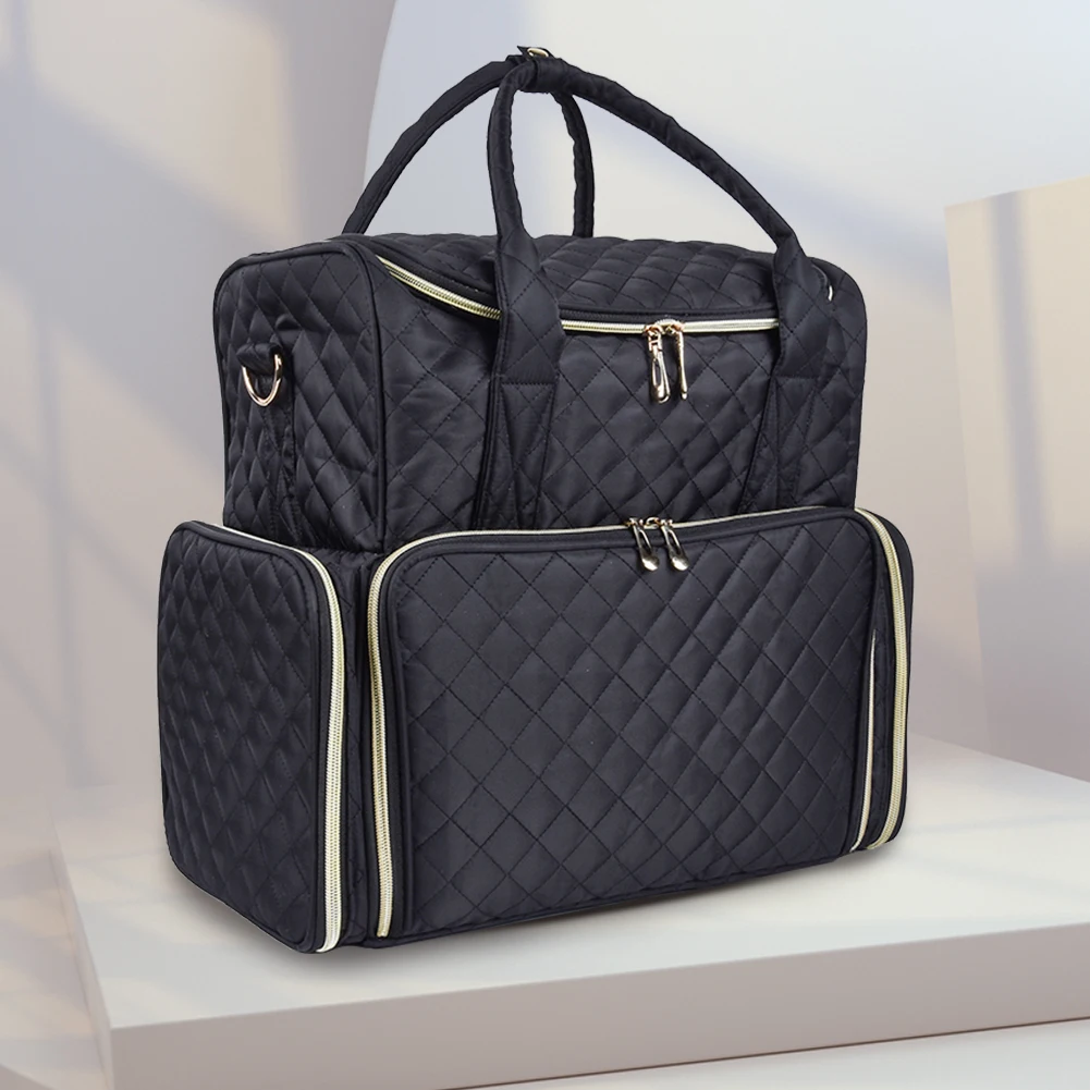 Features: 1. Large capacity: The top compartment provides large storage space for tools, which can accommodate light dryer, nail drill and drill, nail remover, brush, cotton pad, nail file, gel nail, dip powder, etc. 2. Double layer design: nail polish and UV finishing tool suitcase, so that you can easily get what you want without disturbing other nail accessories. 3. High quality material: made of high quality Polyester material, the shell is firm, which can well protect the nail polish bottle. 4. Bottom compartment: 30 nail polish bottles of different sizes (0.3-0.5) can be organized. The soft adjustable divider provides maximum flexibility and prevents bottles from colliding with each other. 5. Equipped with a handle: It is very suitable for carrying around, and its simple and fashionable appearance is also very suitable for nail enthusiasts and daily use in families. Specification: