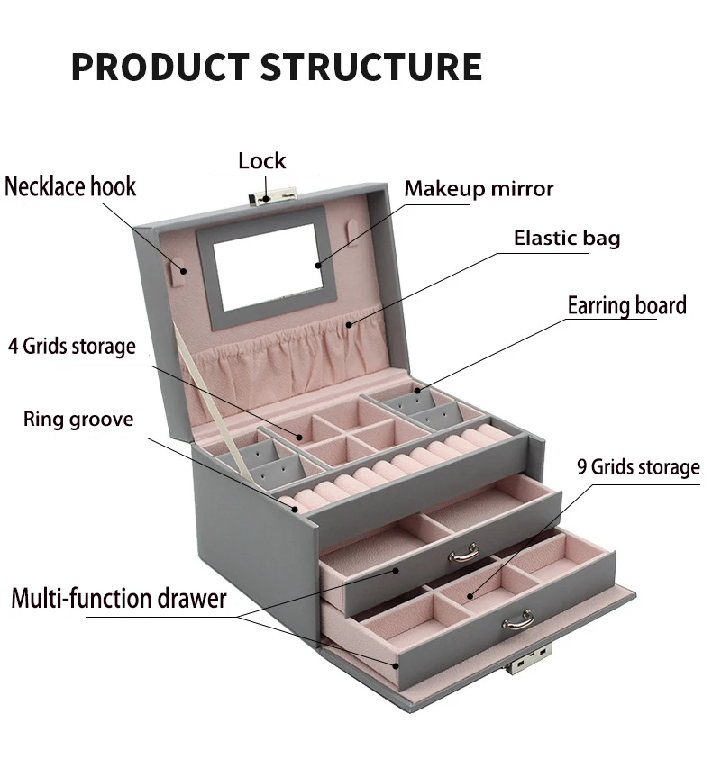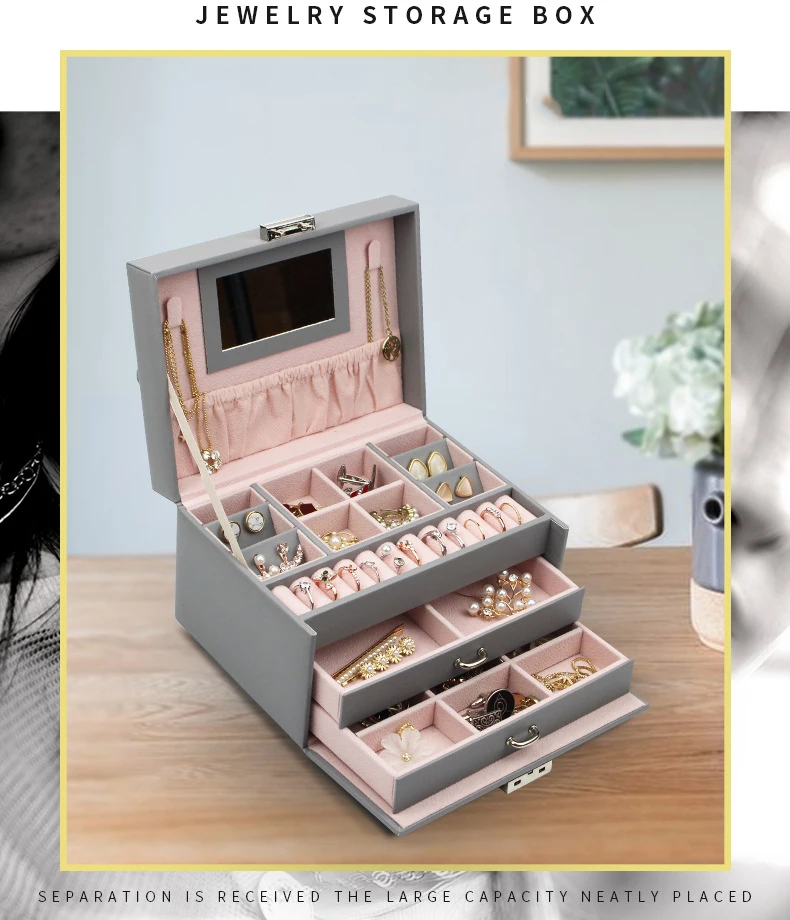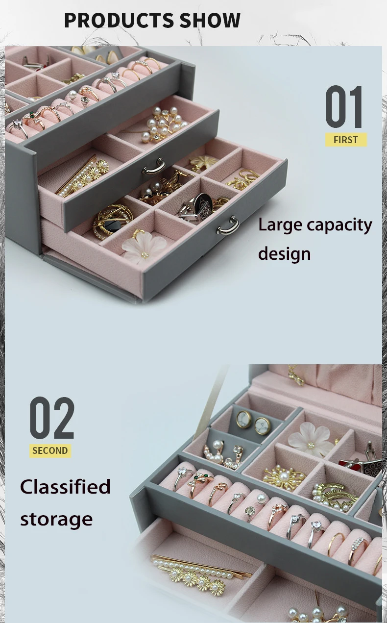 New Jewelry Box Display Travel Jewelry Case Jewelry Organizer Storage Boxes Portable Leather Joyeros Organizador De Joyas