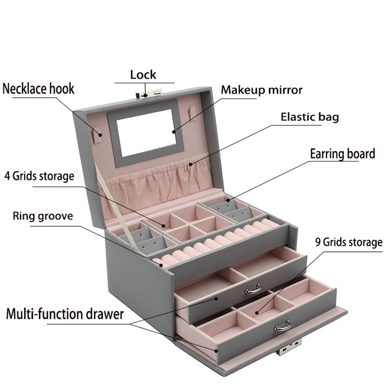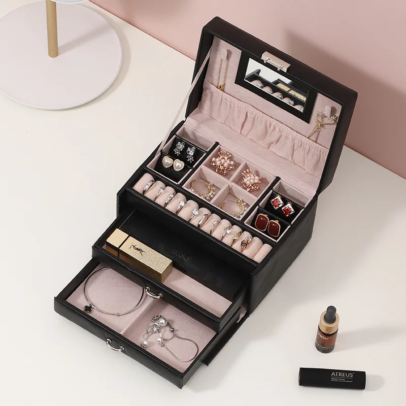 New Jewelry Box Display Travel Jewelry Case Jewelry Organizer Storage Boxes Portable Leather Joyeros Organizador De Joyas