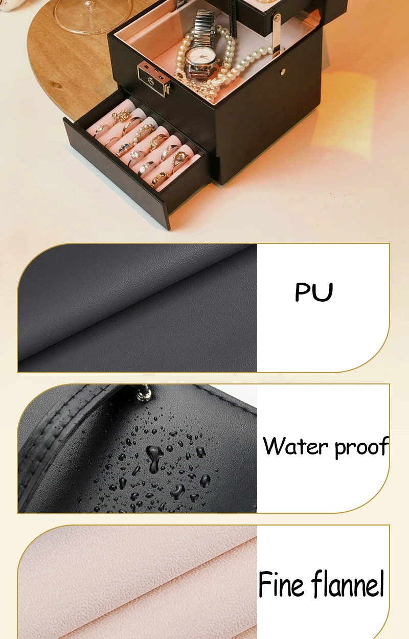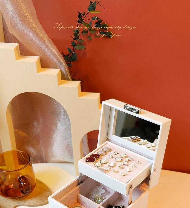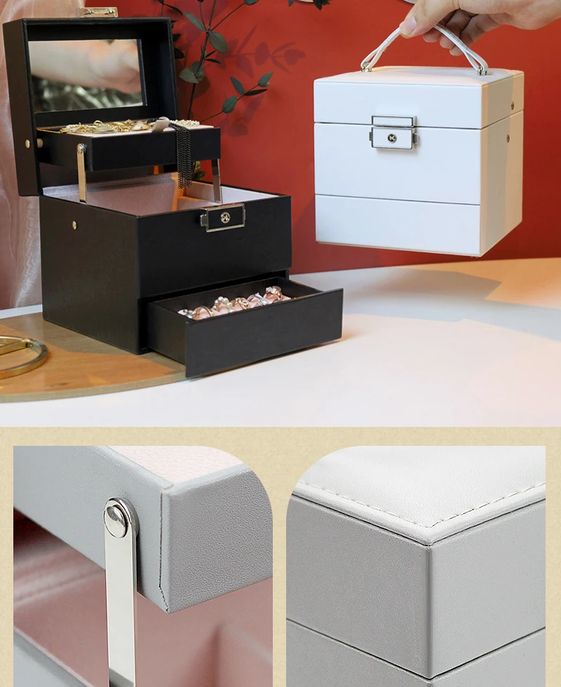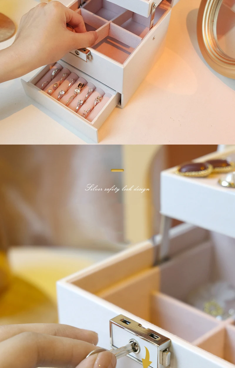 Double layer Jewelry Box Portable Necklace Earrings Rings Jewelry Organizer Packaging PU Leather Storage Joyeros Organizador