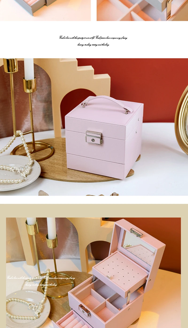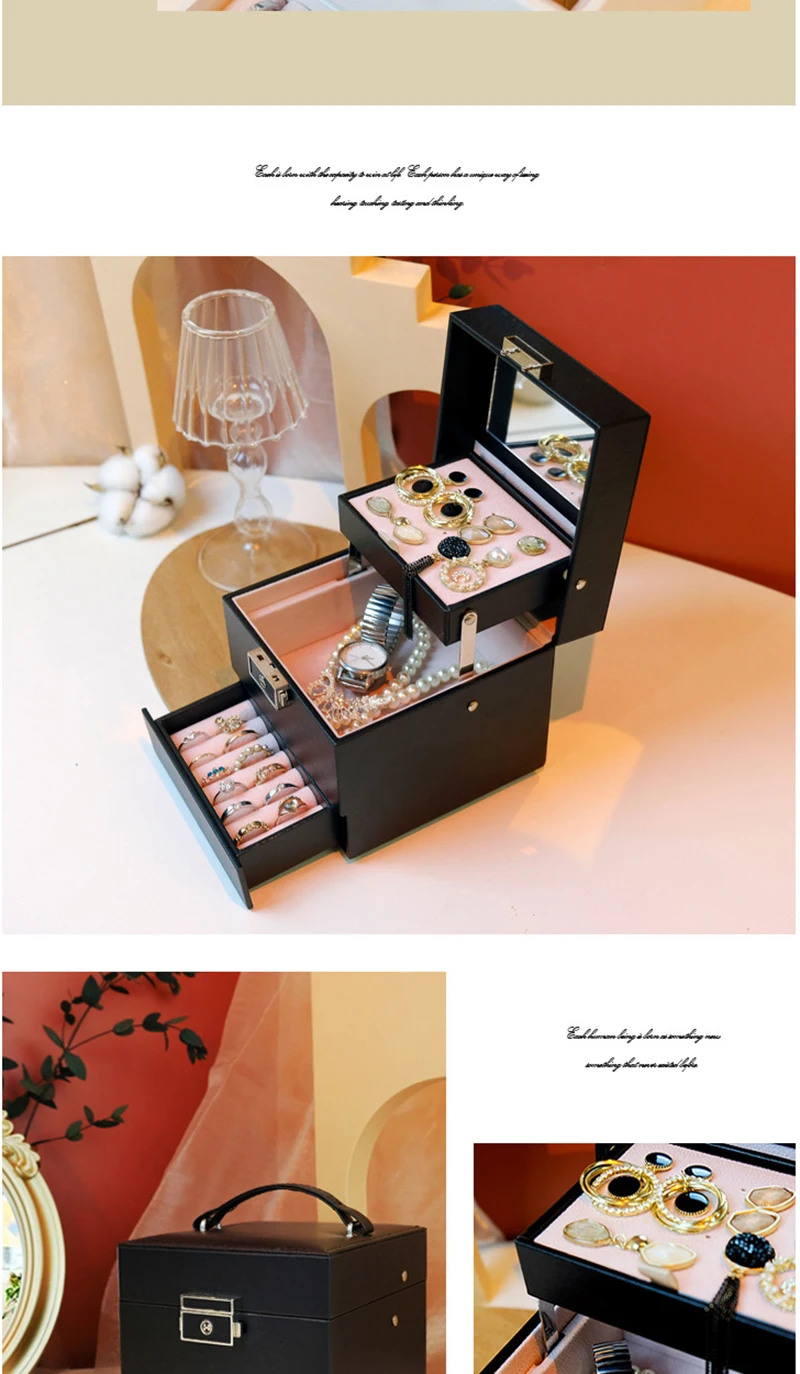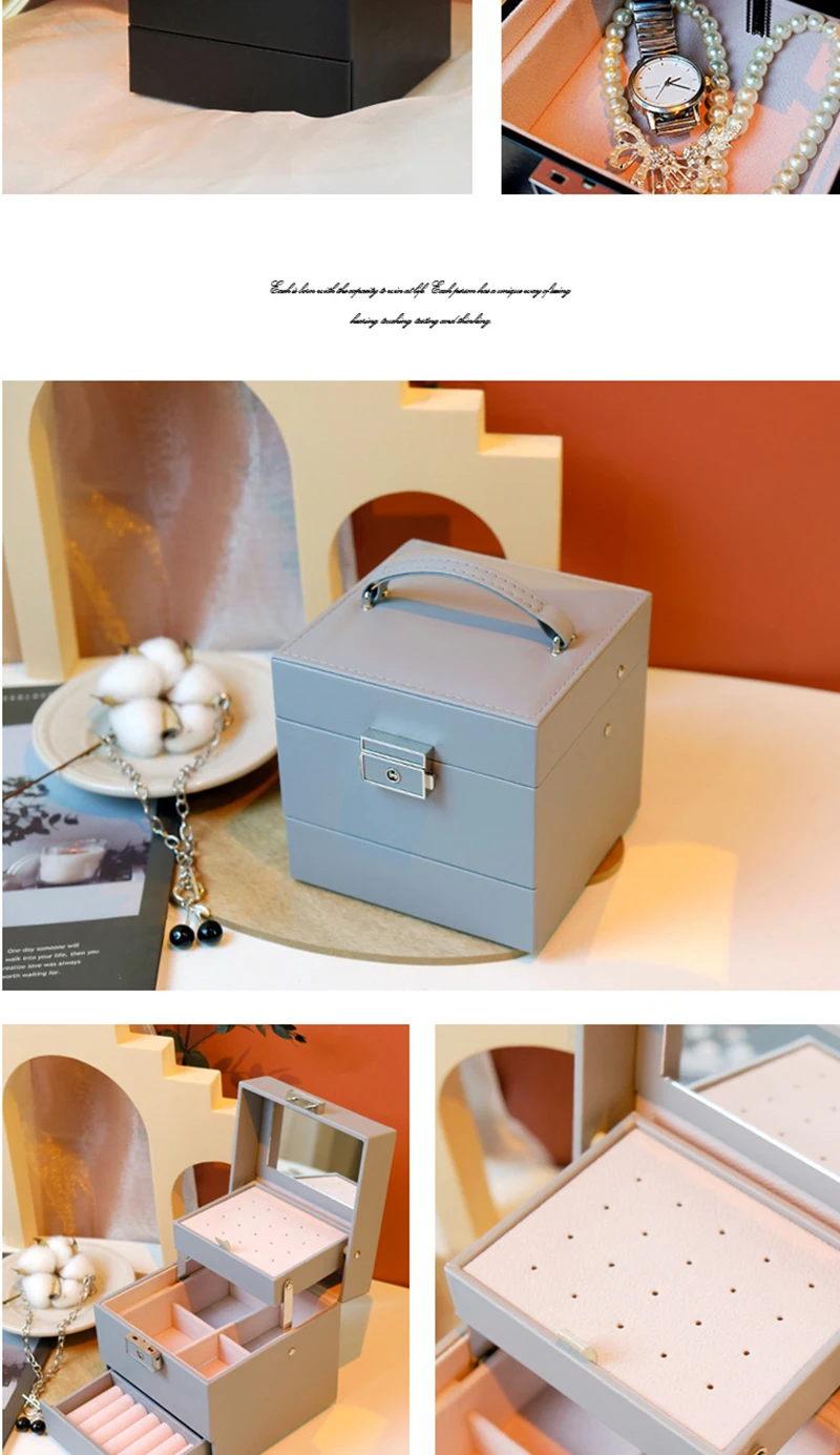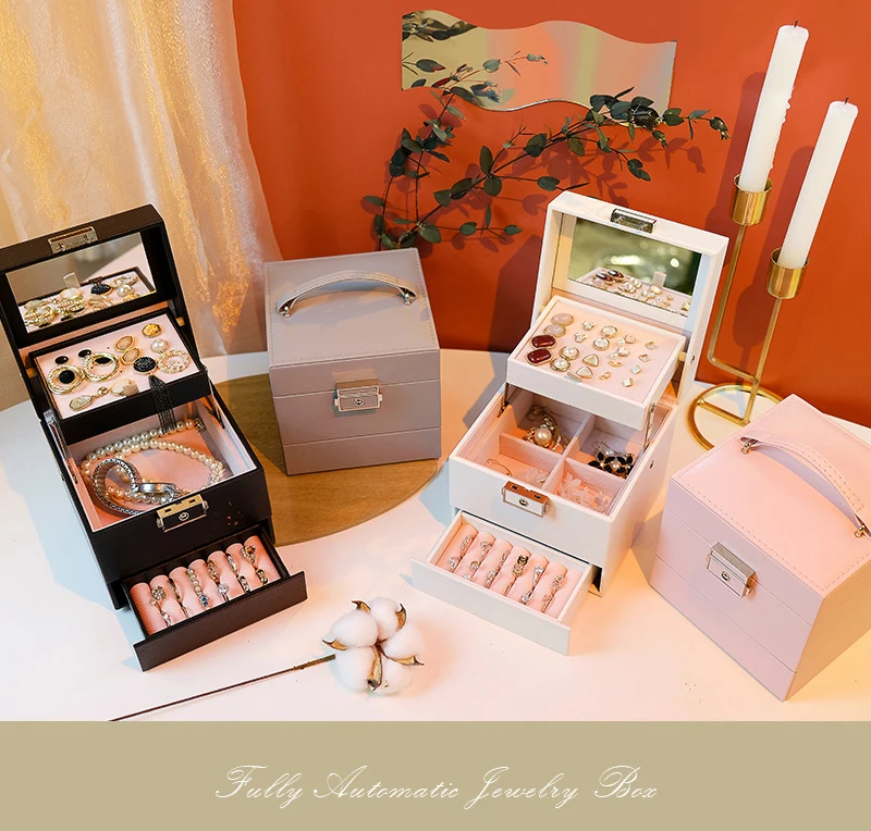 Double layer Jewelry Box Portable Necklace Earrings Rings Jewelry Organizer Packaging PU Leather Storage Joyeros Organizador