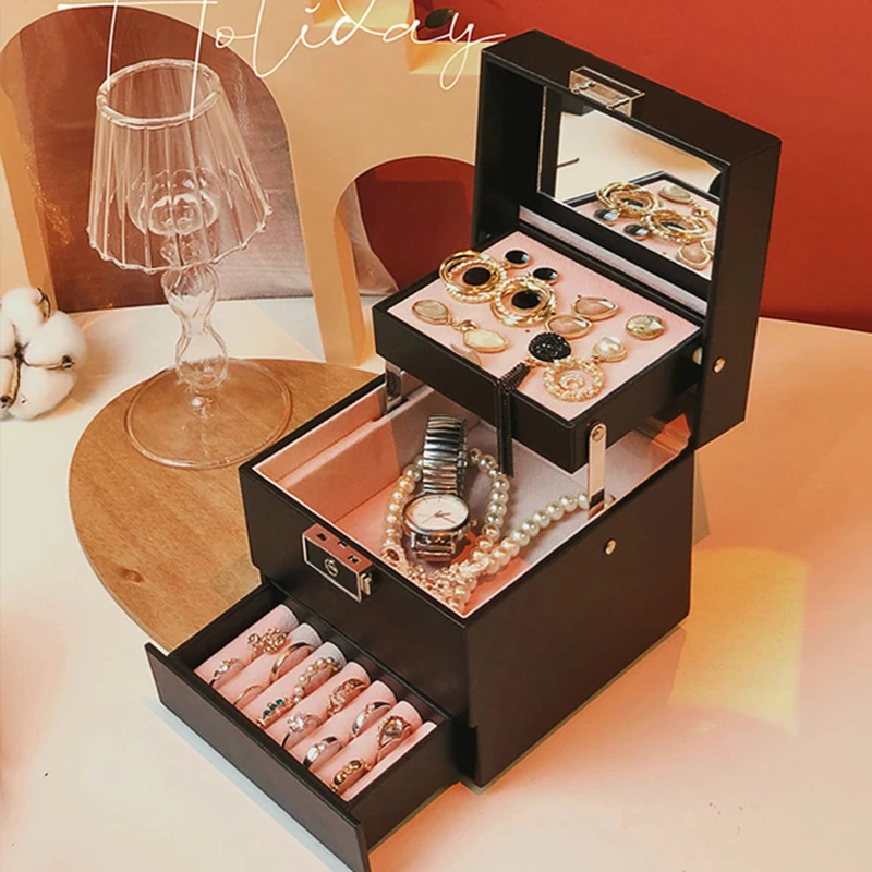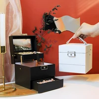 Double layer Jewelry Box Portable Necklace Earrings Rings Jewelry Organizer Packaging PU Leather Storage Joyeros Organizador