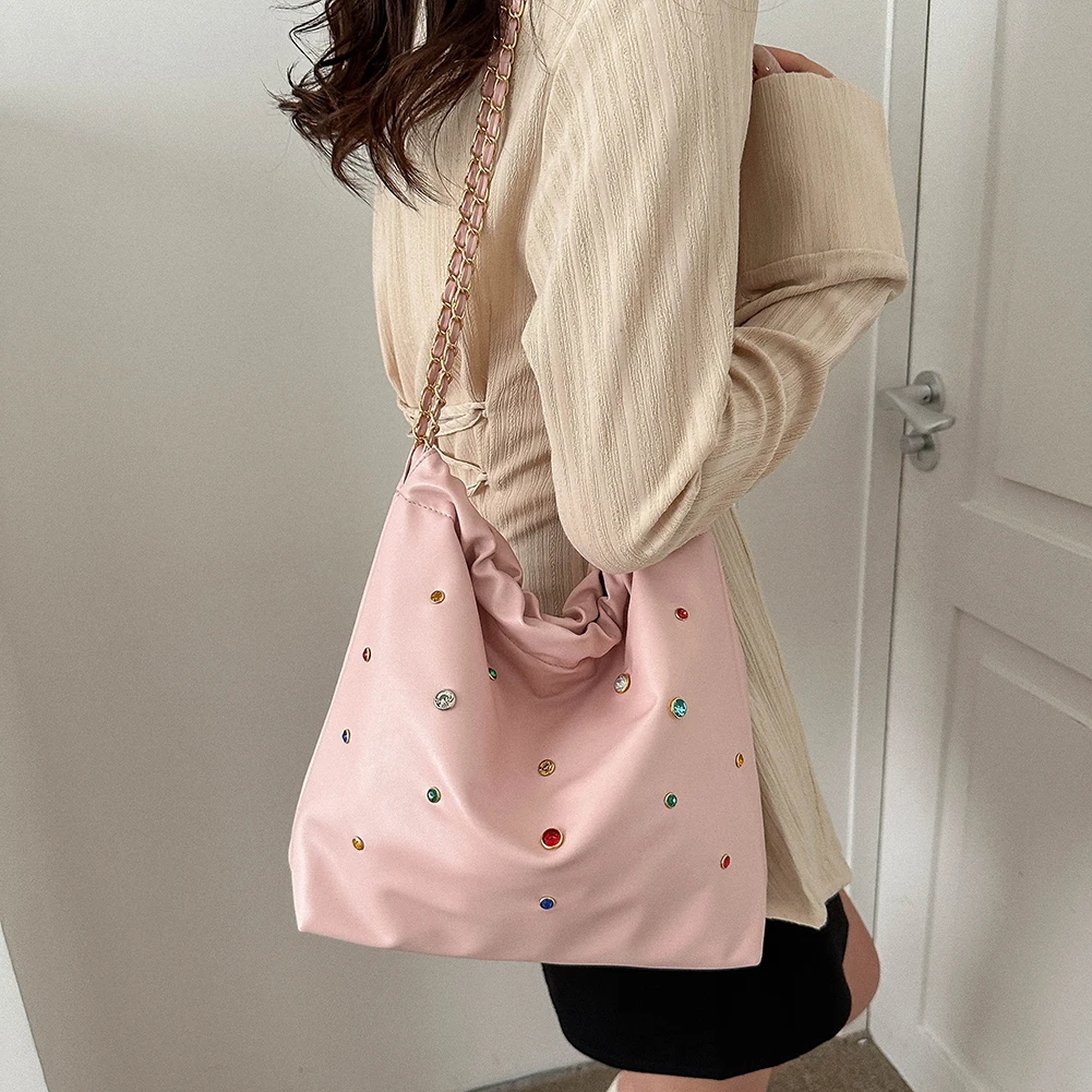 PU Composite Shoulder Bag Breathable Women Pillow Crossbody Bag Durable Chain Scratch Resistant Suction Buckle Daily Leisure