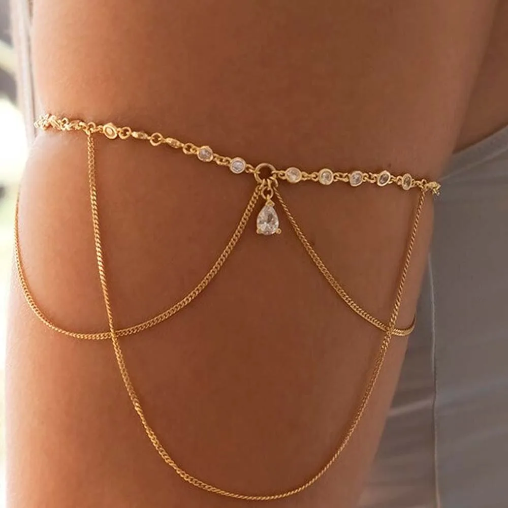 Stonefans Colorful Geometric Back Chain Necklace Belly Dance Jewelry Fashion Water Drop Rhinestone Back Chain Dress for Women
