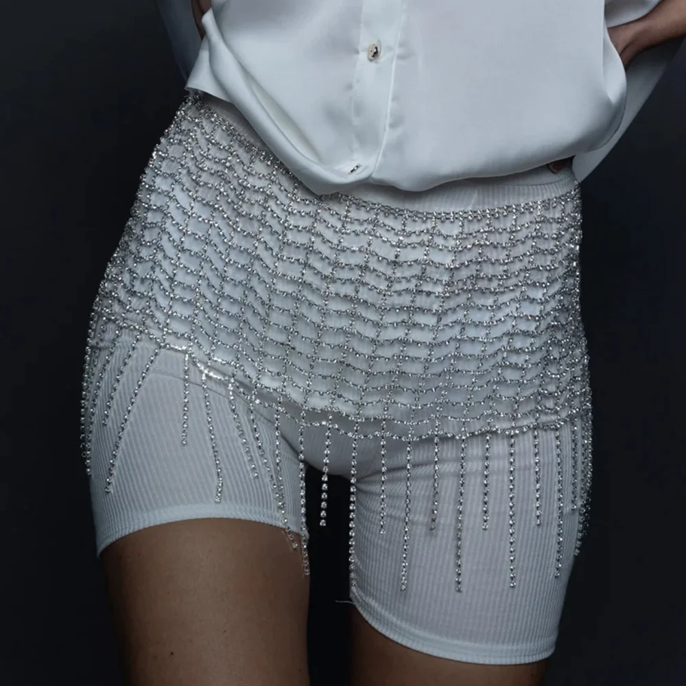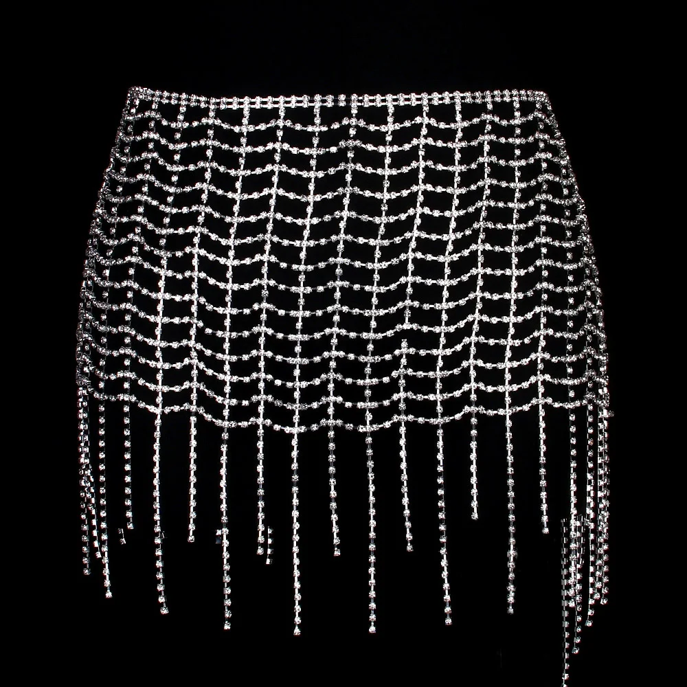 Stonefans Mesh Tassel Rhinestone Bottoms Body Jewelry for Women Summer Beach Package Hip Skirt Body Chain Night Club Outfits