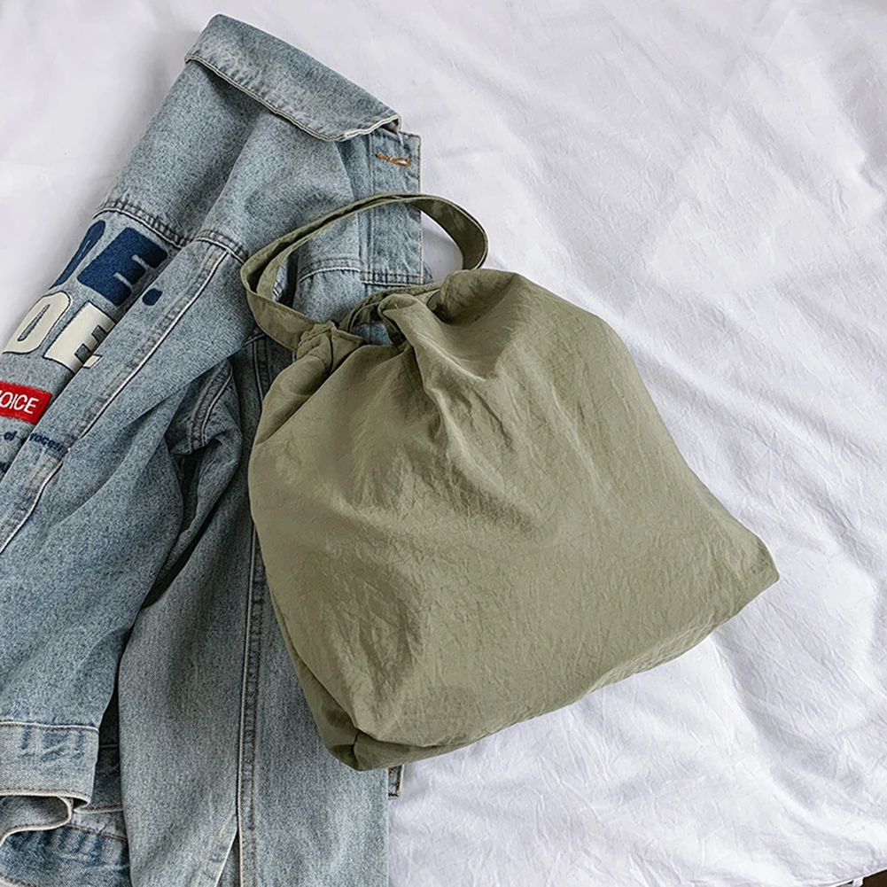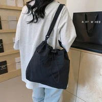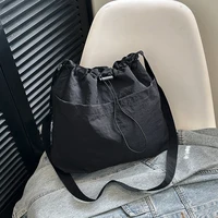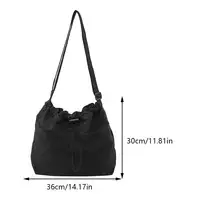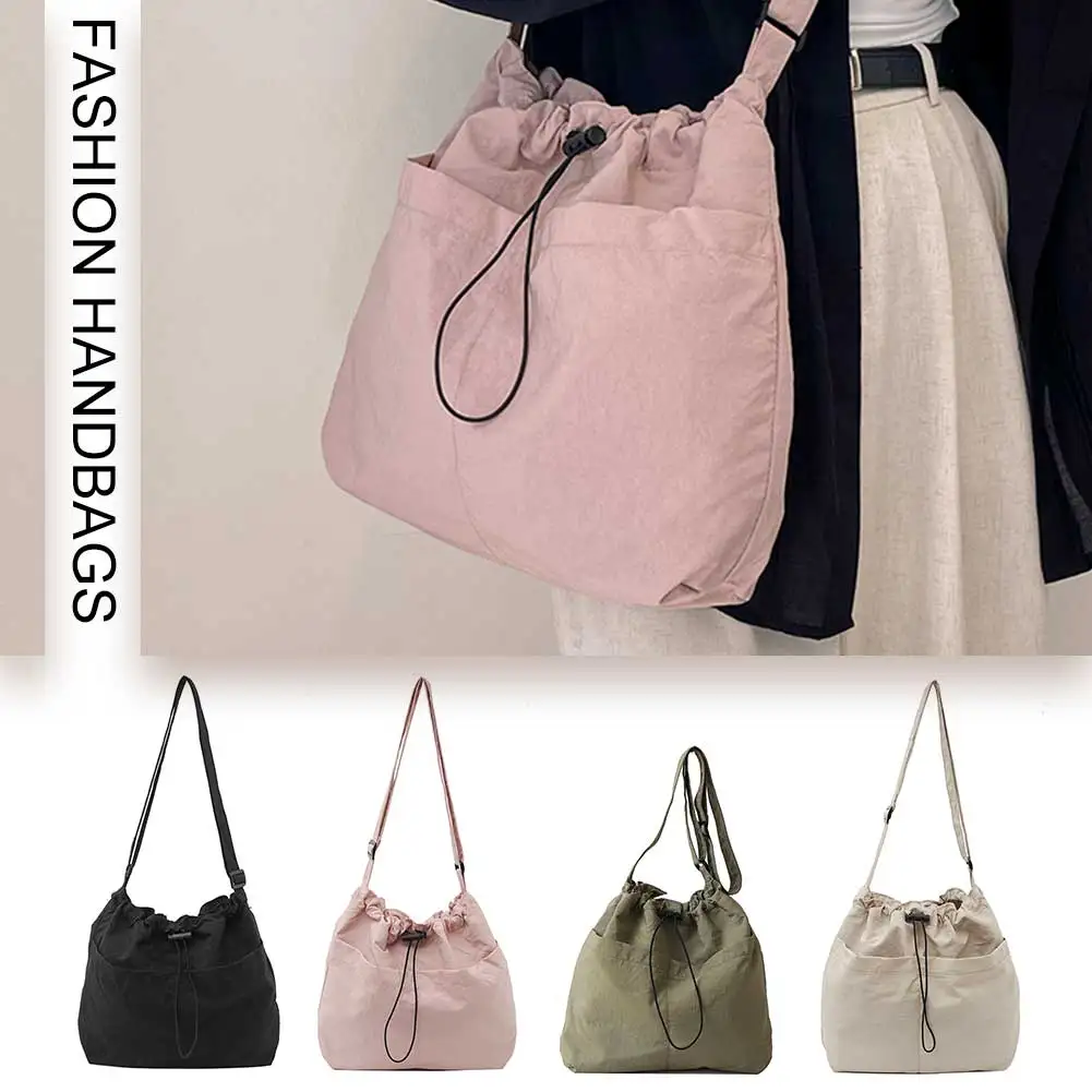 Women Casual Satchel Bag Large Capacity Nylon Drawstring Bucket Bag Lightweight Commuting Bag Multi-pockets for Outdoor Travel
