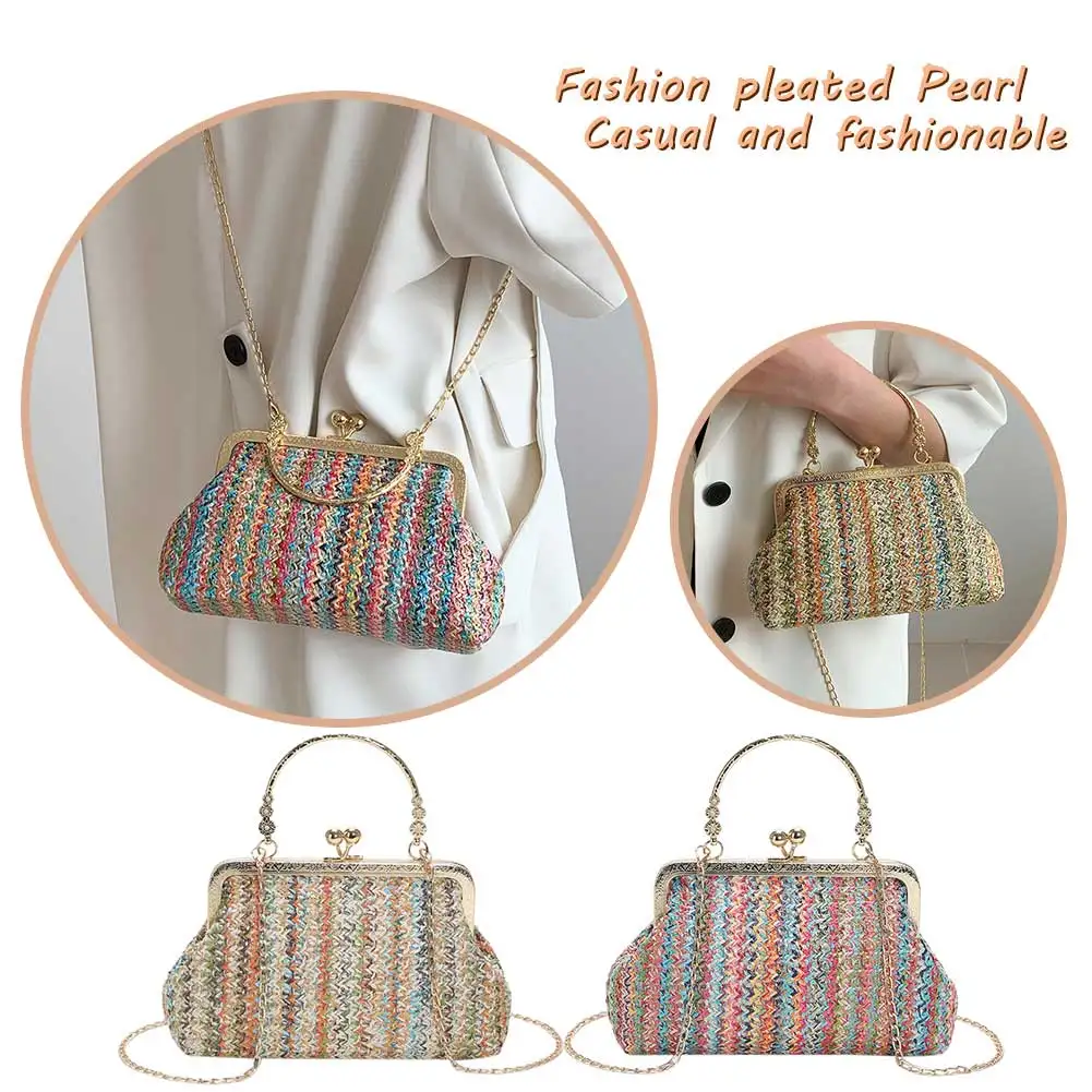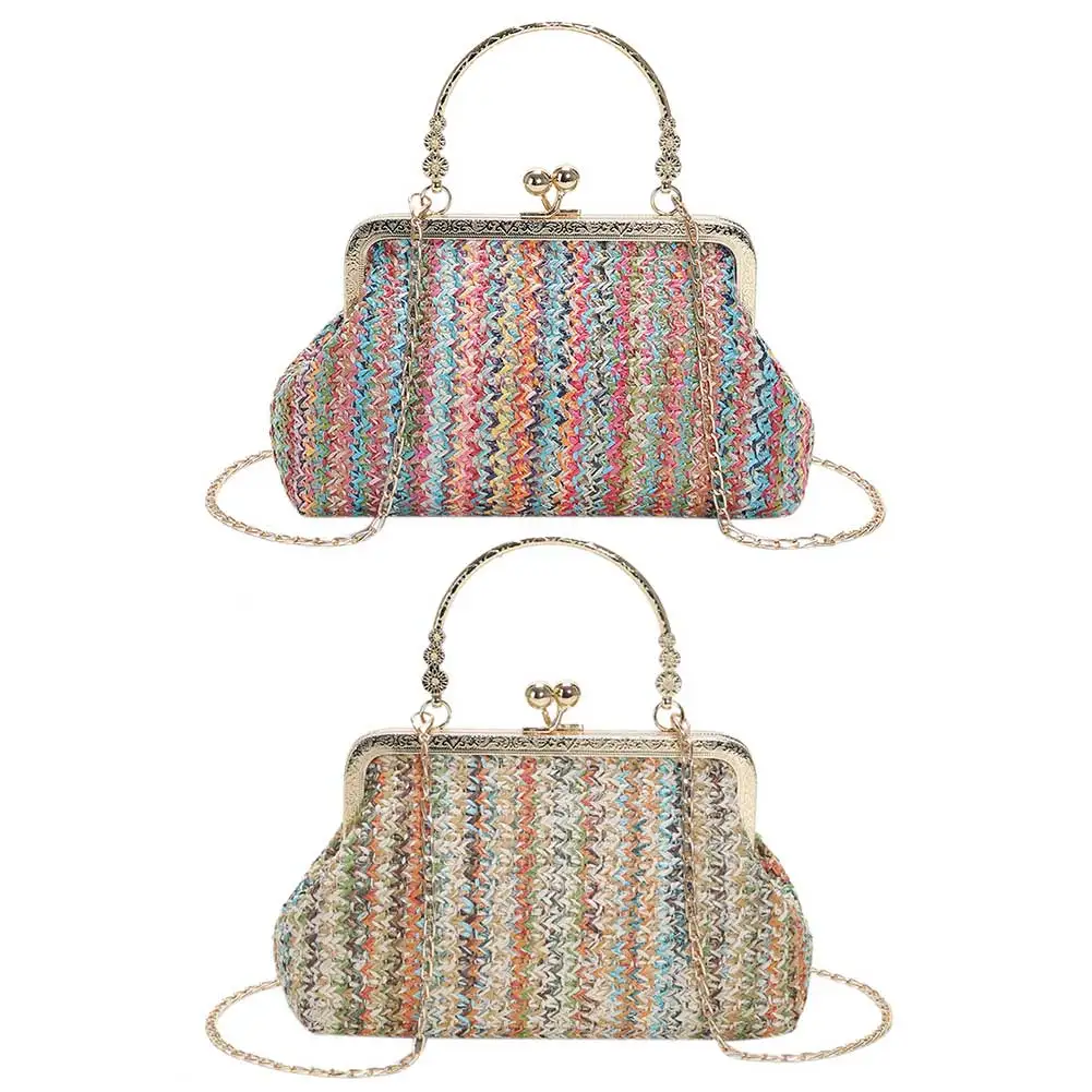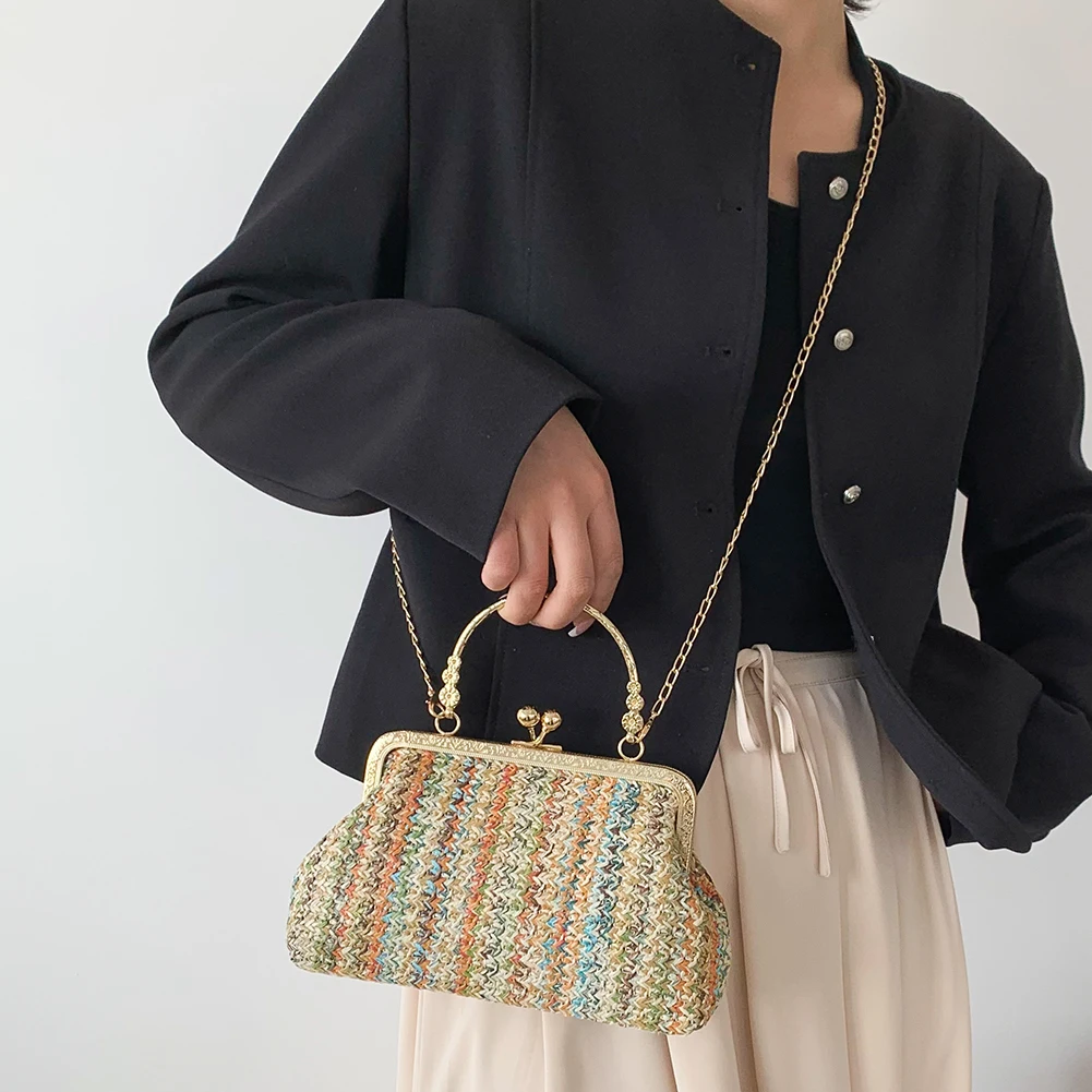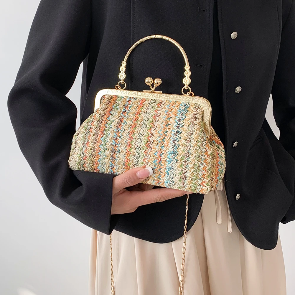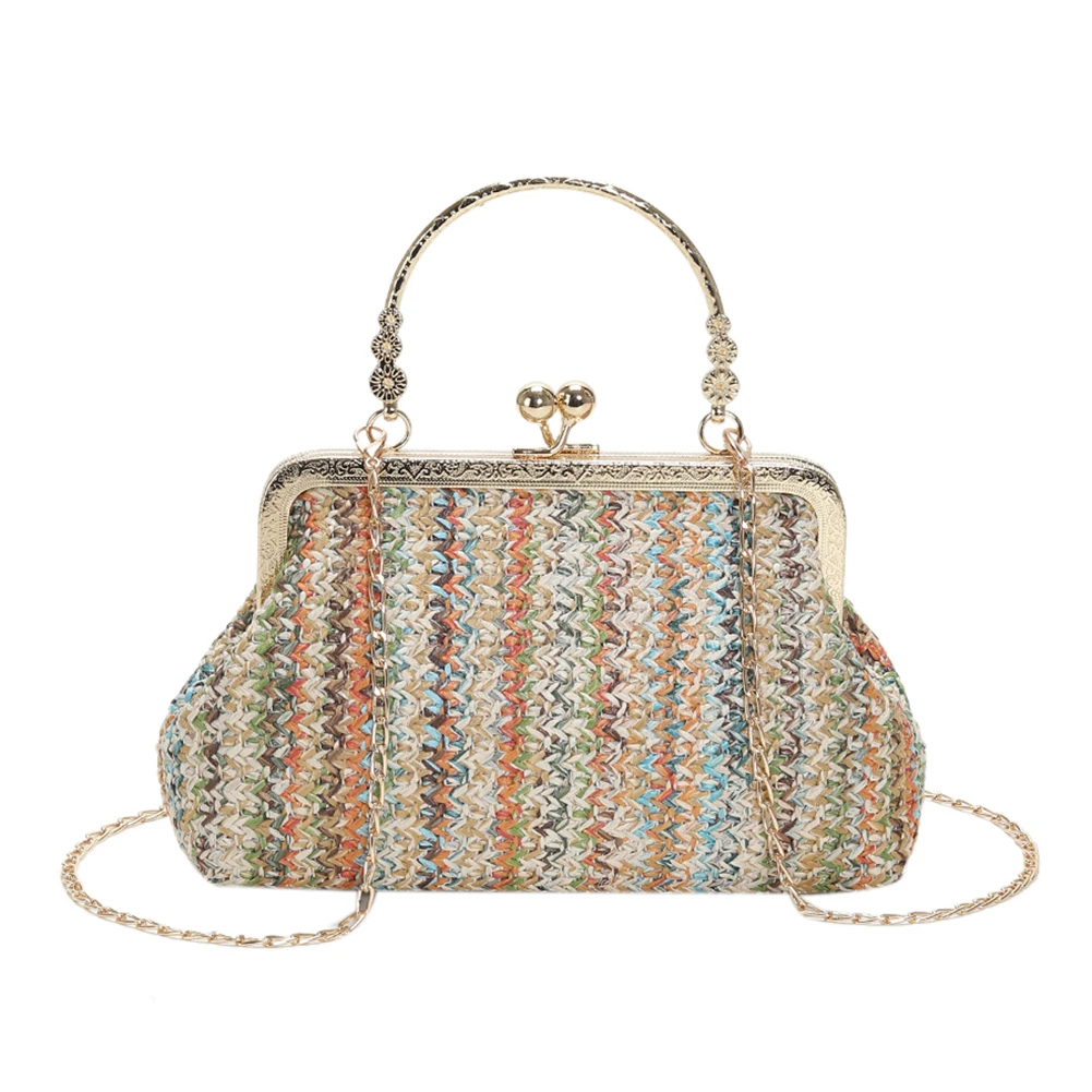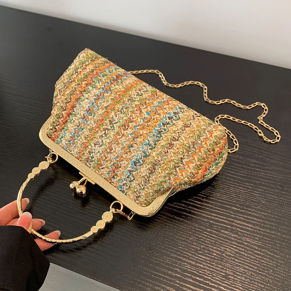 Grass Woven Bag Summer Female Chain Clutch Bag Simple Texture Dinner Party Handmade Casual Elegant Fashion Portable Evening Bag