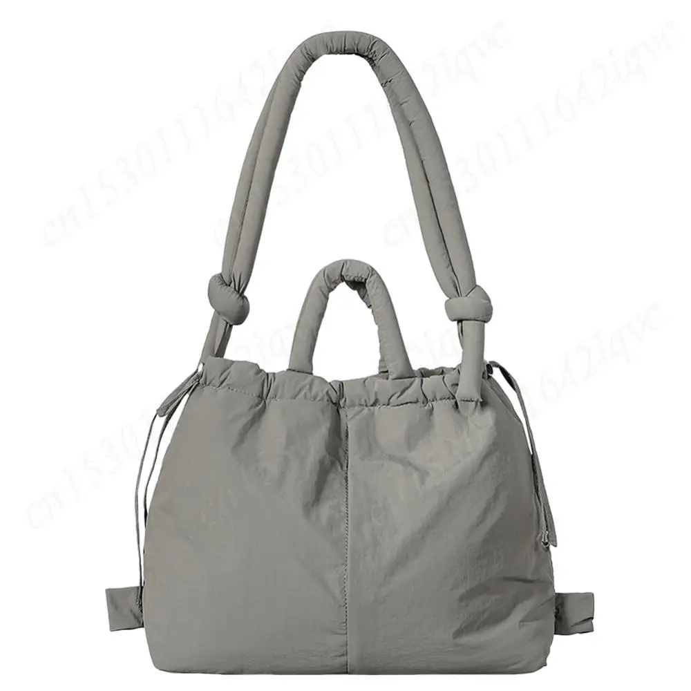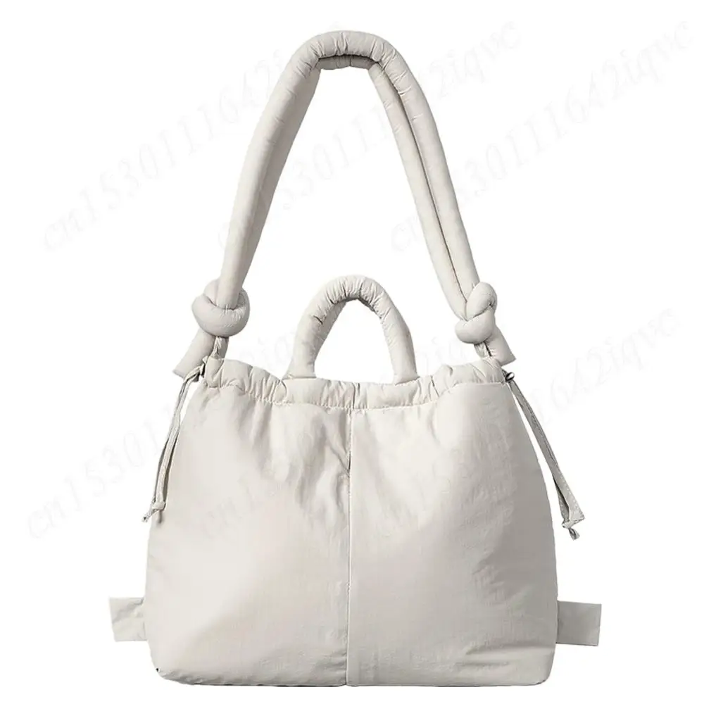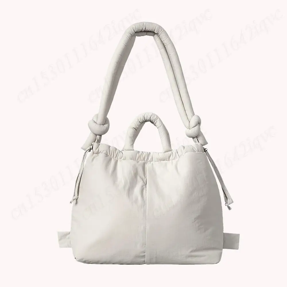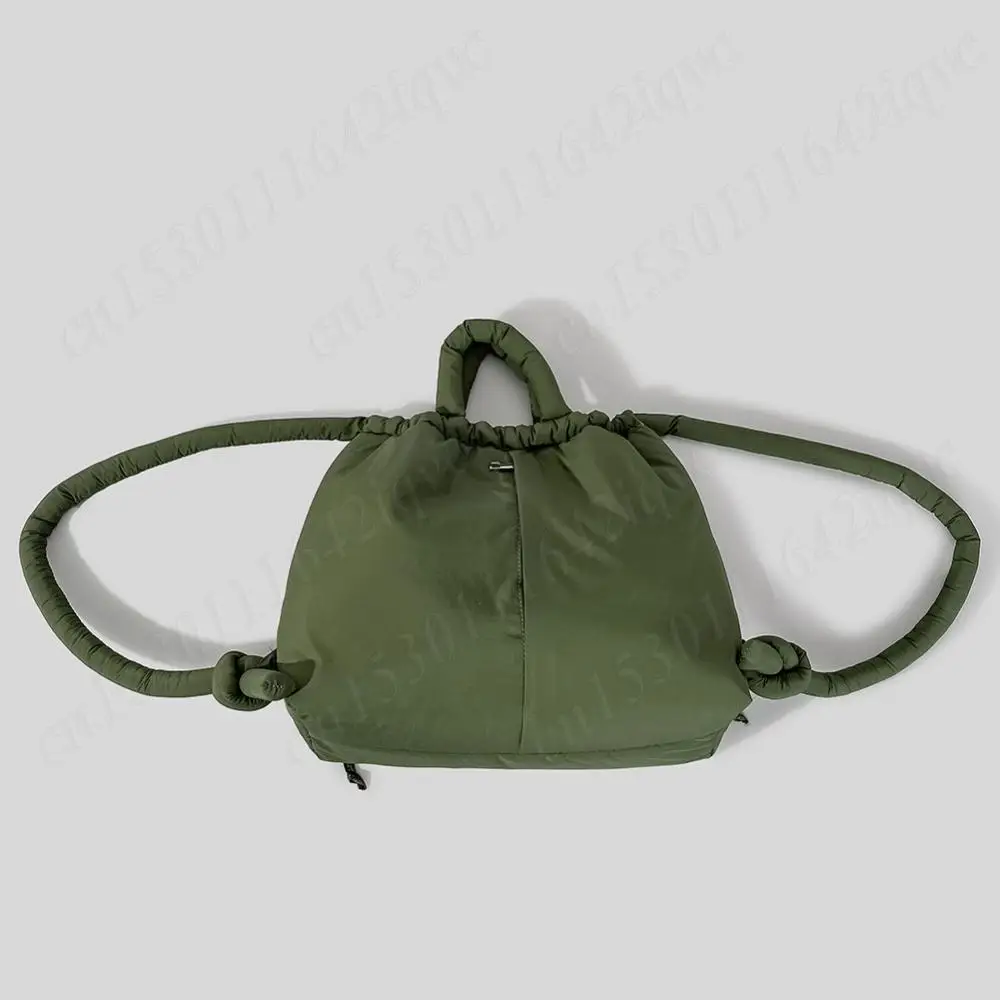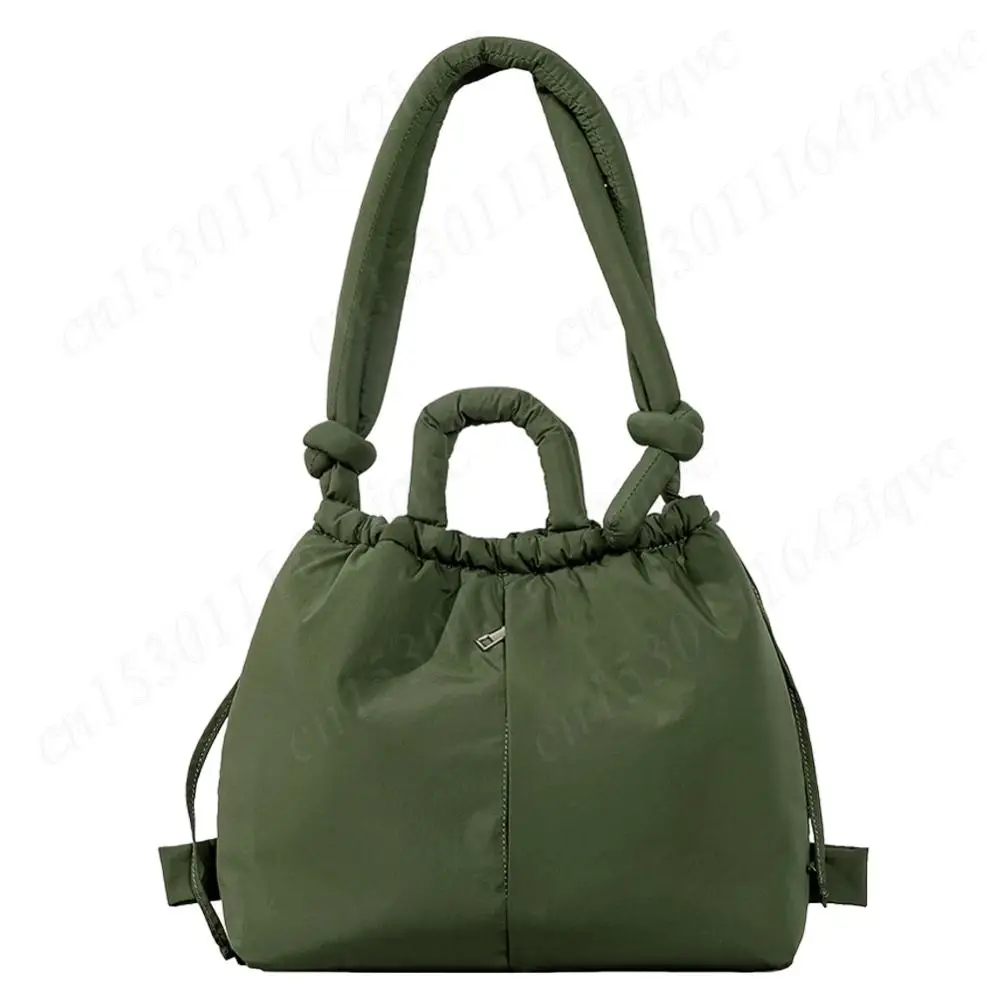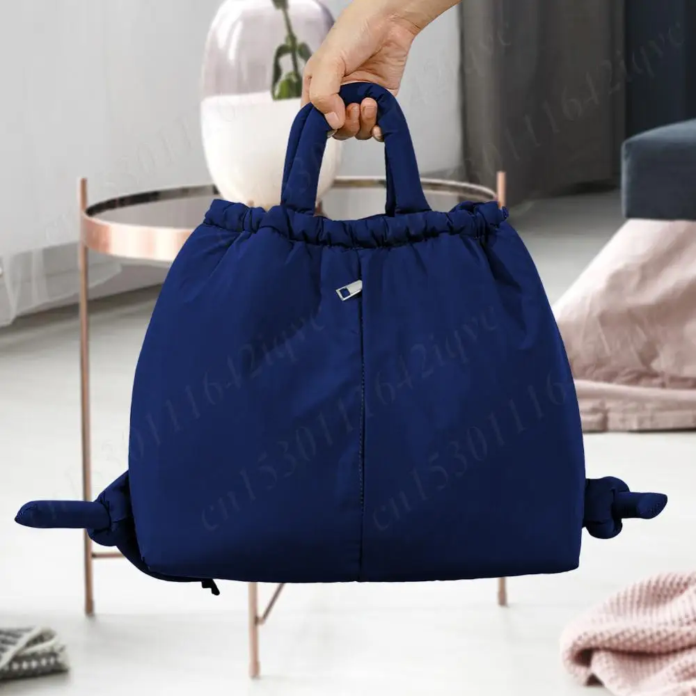 Women Puffer Tote Bag Drawstring Bucket Bag Lightweight Fashion Tote Handbag Large Capacity Padded Down Backpack Puffy Sling Bag