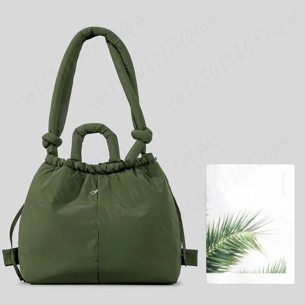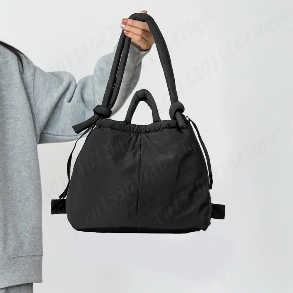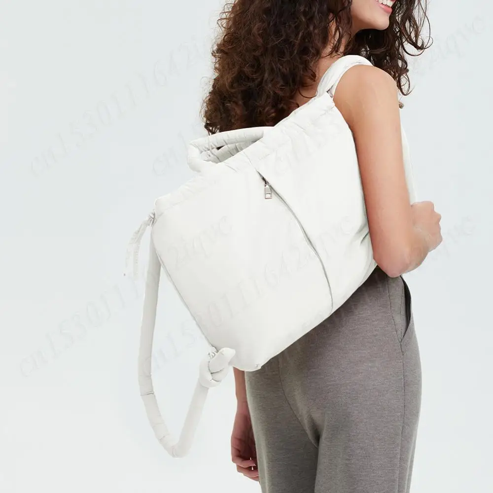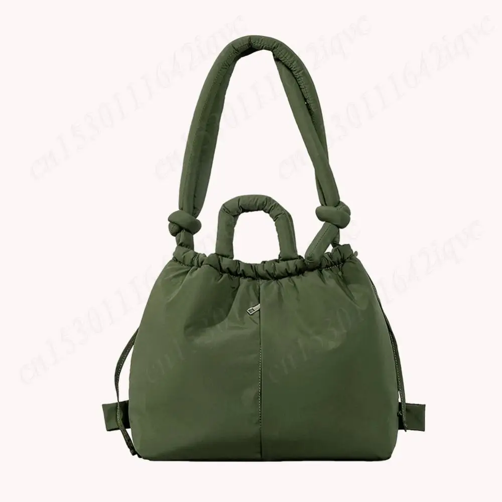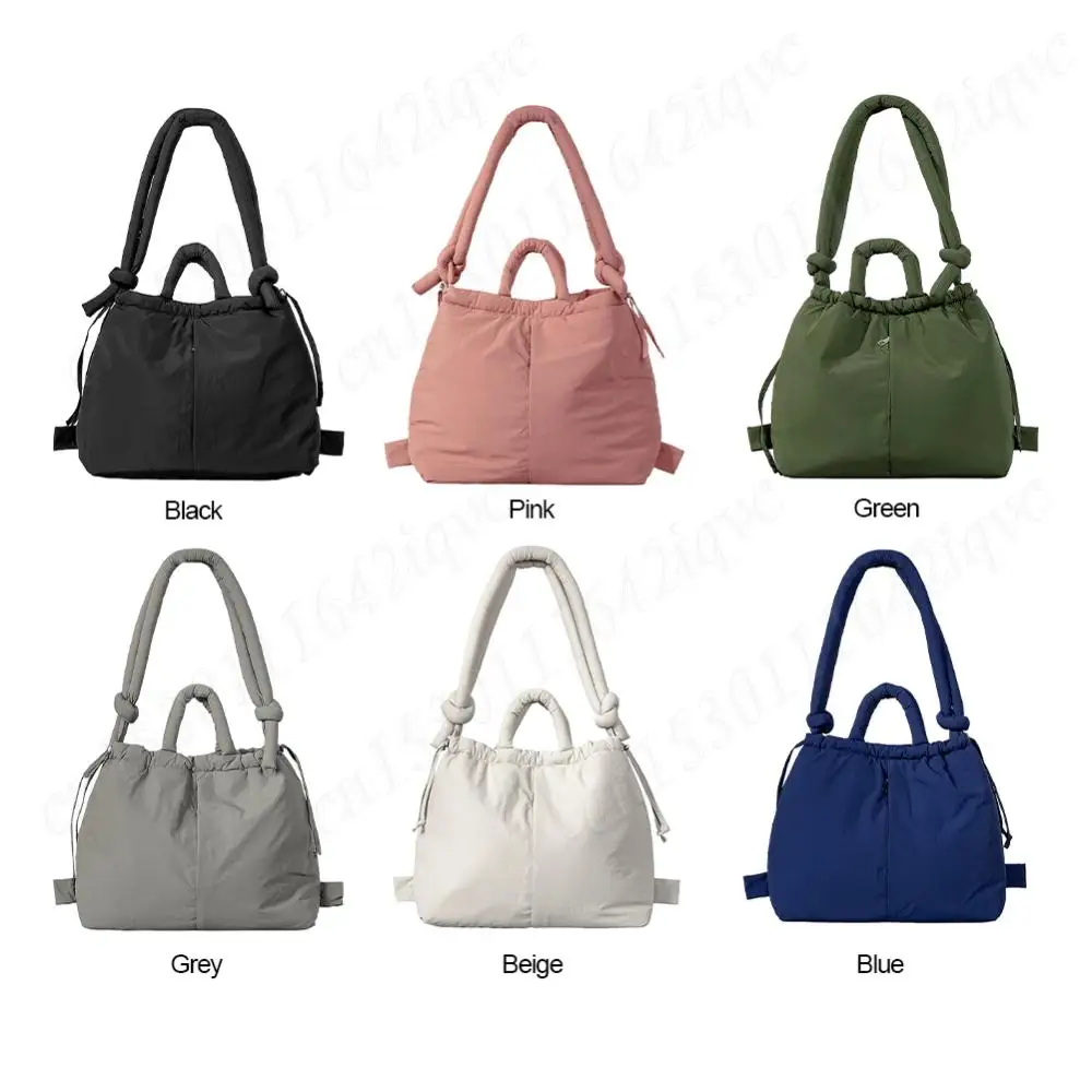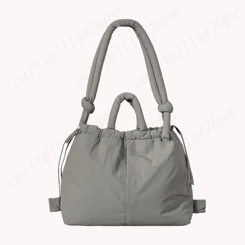 Women Puffer Tote Bag Drawstring Bucket Bag Lightweight Fashion Tote Handbag Large Capacity Padded Down Backpack Puffy Sling Bag