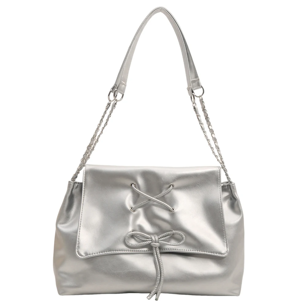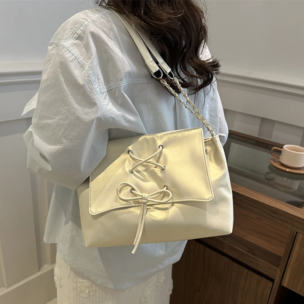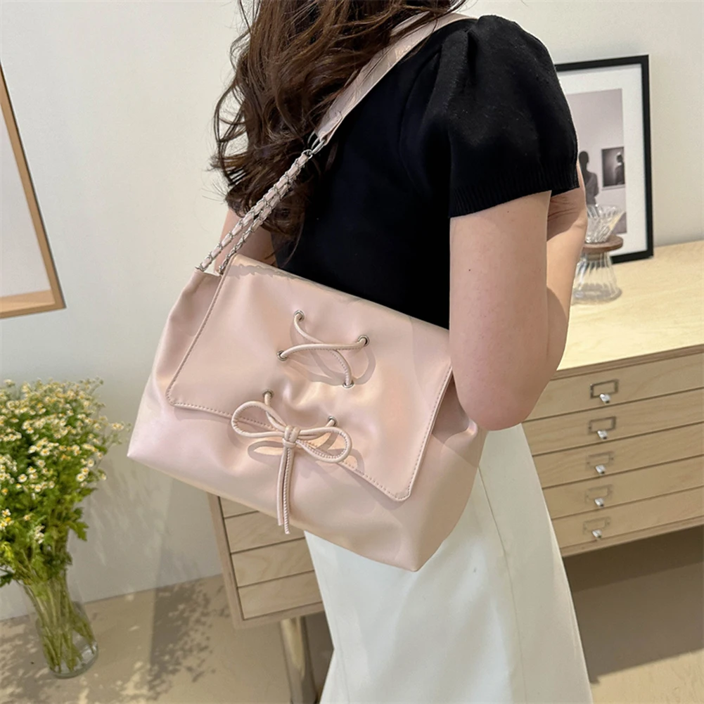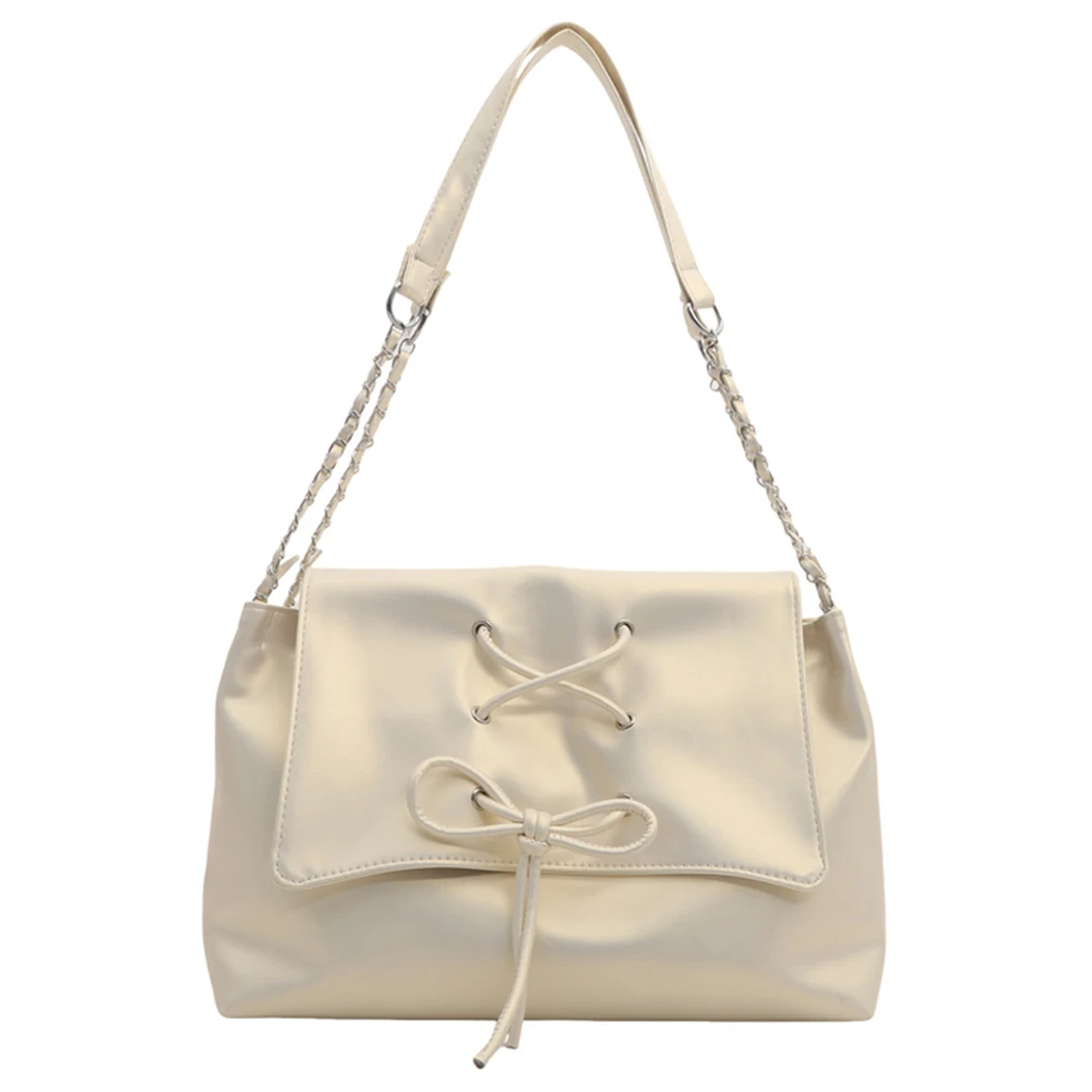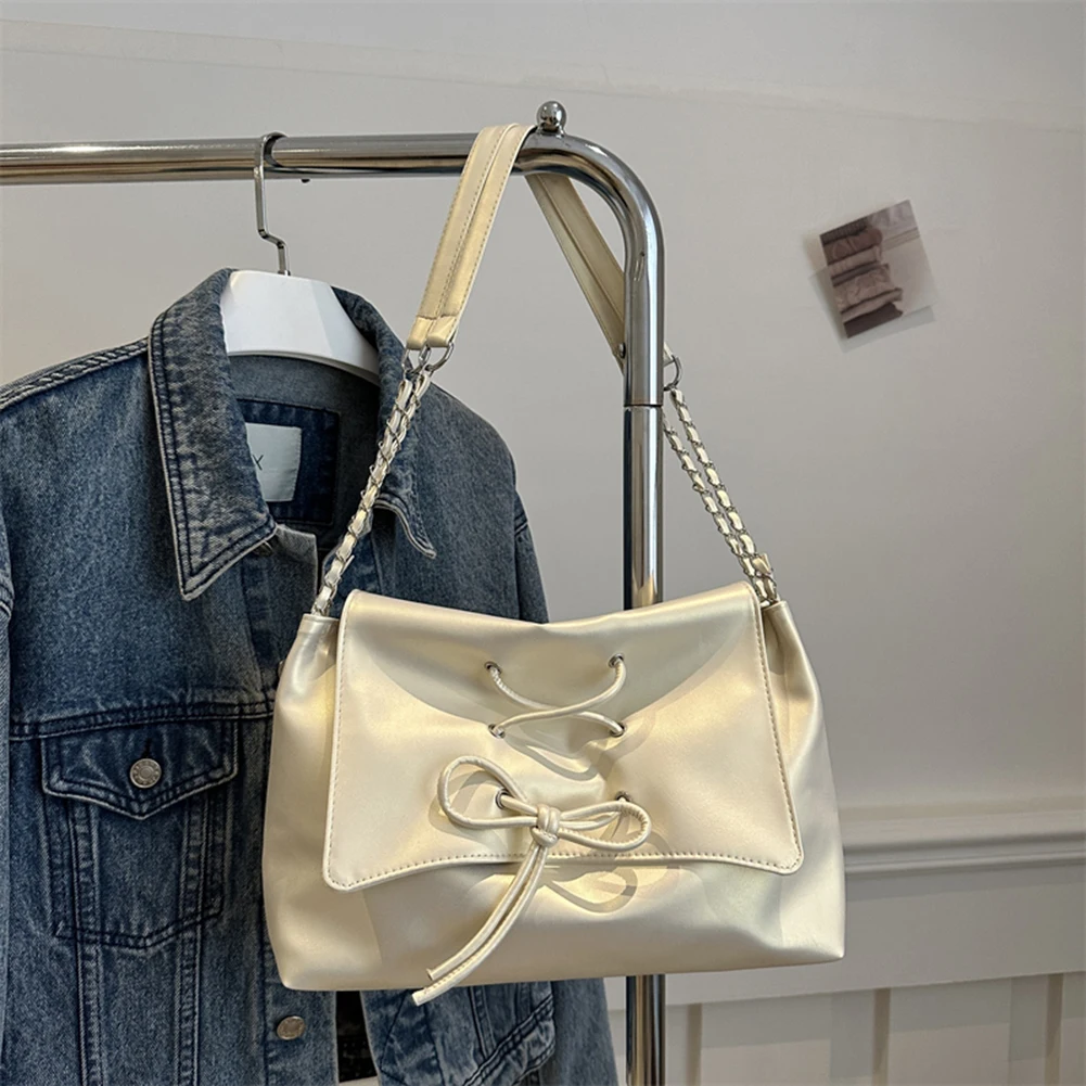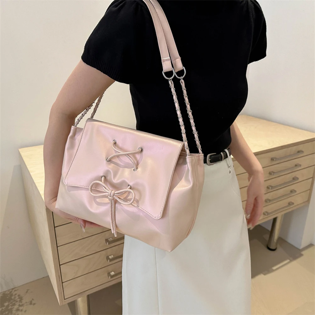 Women Fashion Underarm Bag Chain Strap Bow Flap Shoulder Bag Stylish Messenger Bag Large Capacity for Outdoor Travel