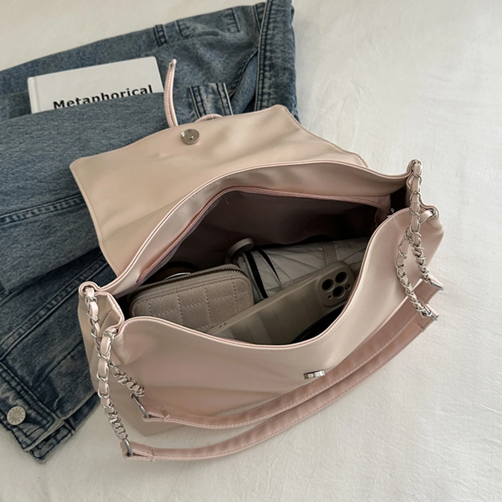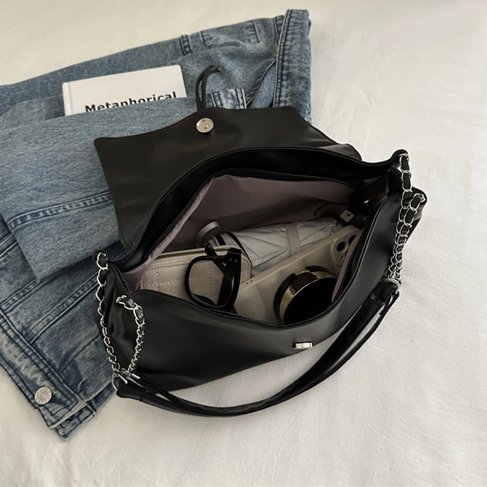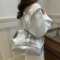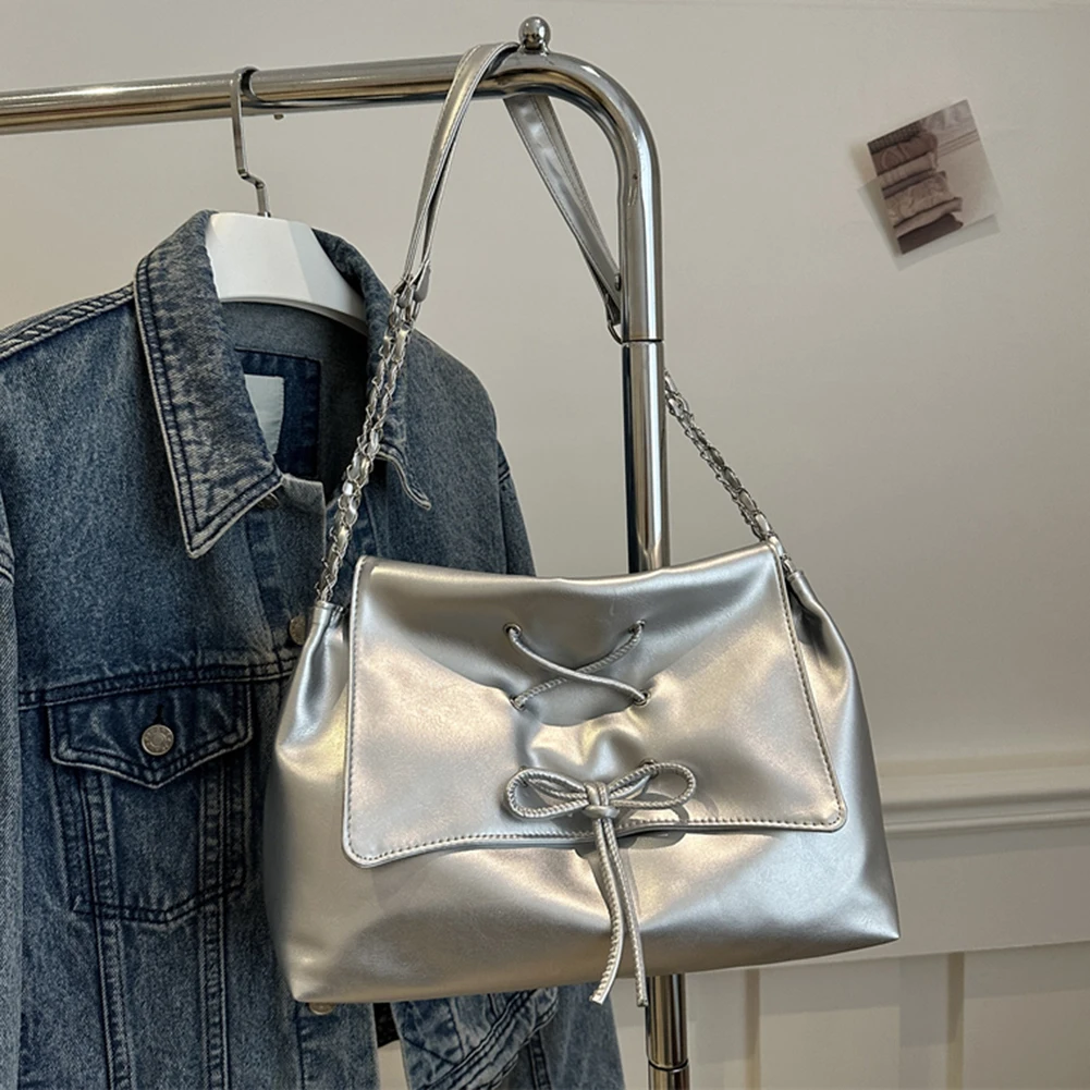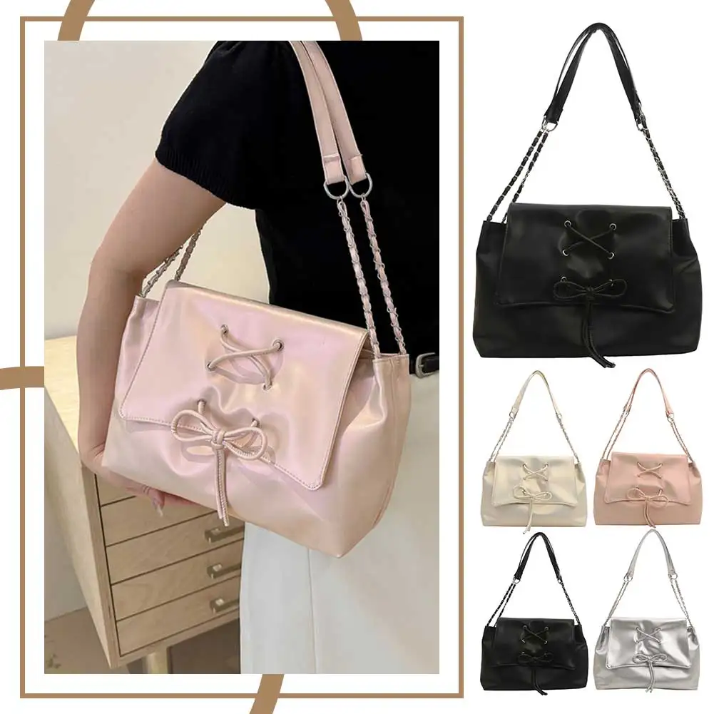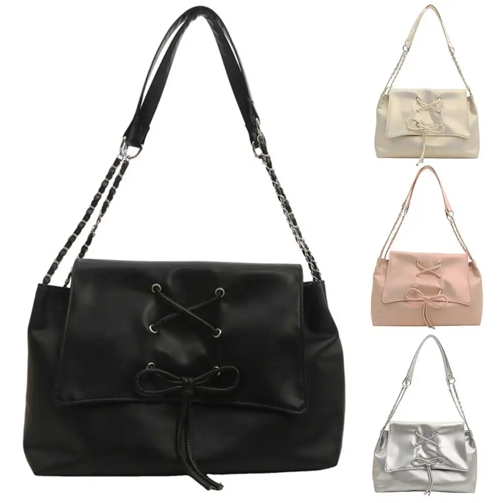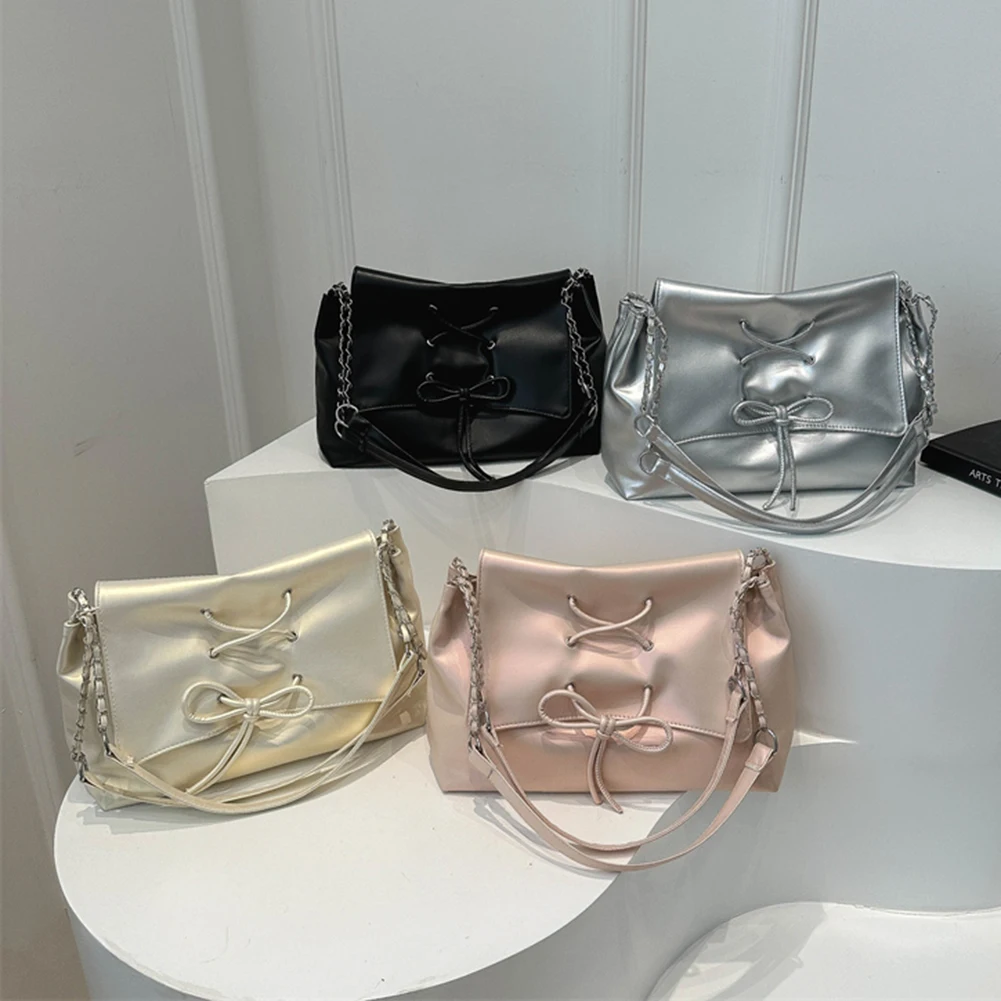 Women Fashion Underarm Bag Chain Strap Bow Flap Shoulder Bag Stylish Messenger Bag Large Capacity for Outdoor Travel
