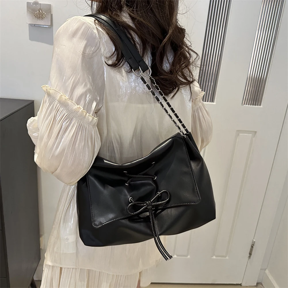 Women PU Leather Handbag Chain Strap Bow Flap Shoulder Bag Fashion Underarm Bag Large Capacity Chic Hobo Bag for Outdoor Travel