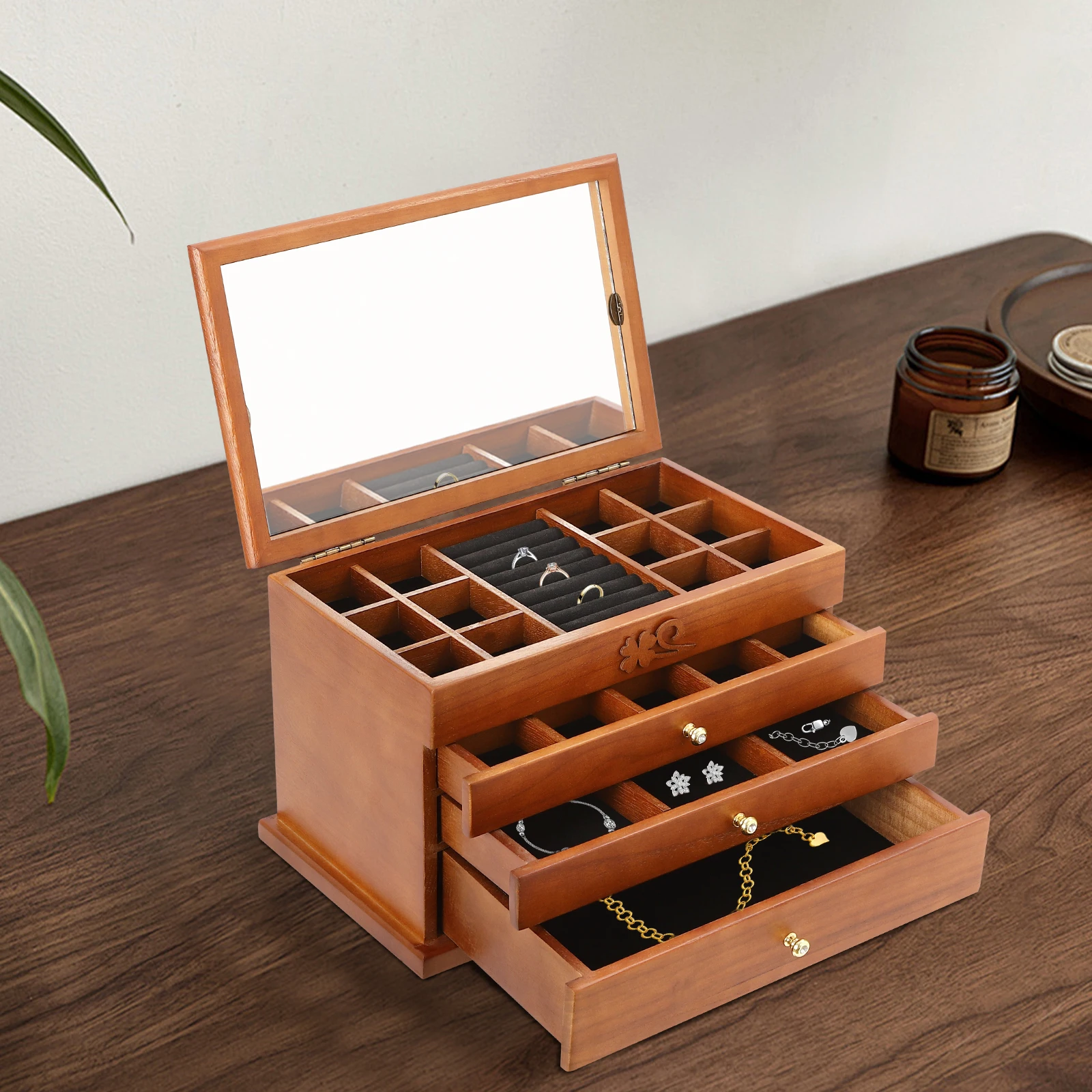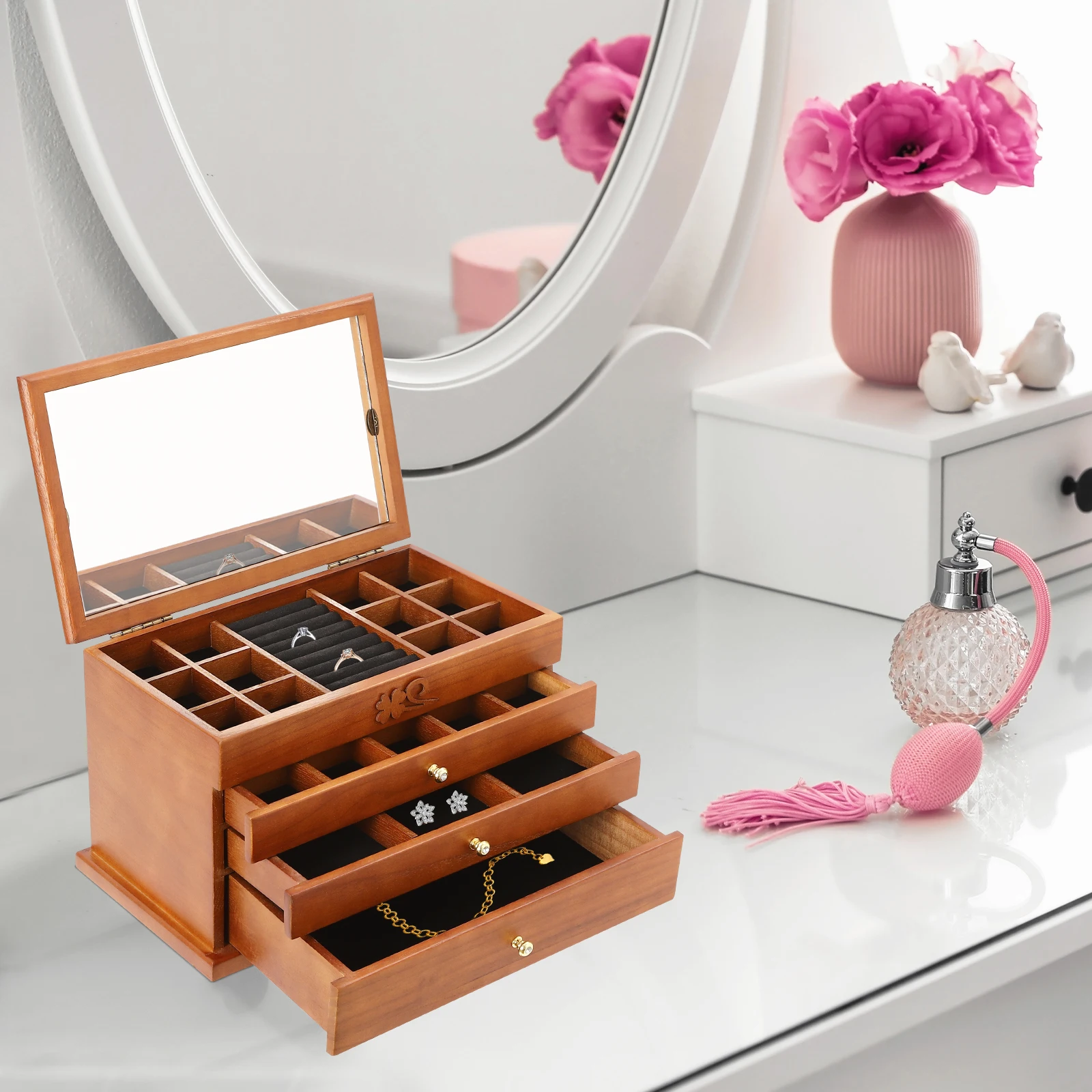 Practical Mirror: The built-in mirror makes it easier for you to select jewelry and match your outfit.