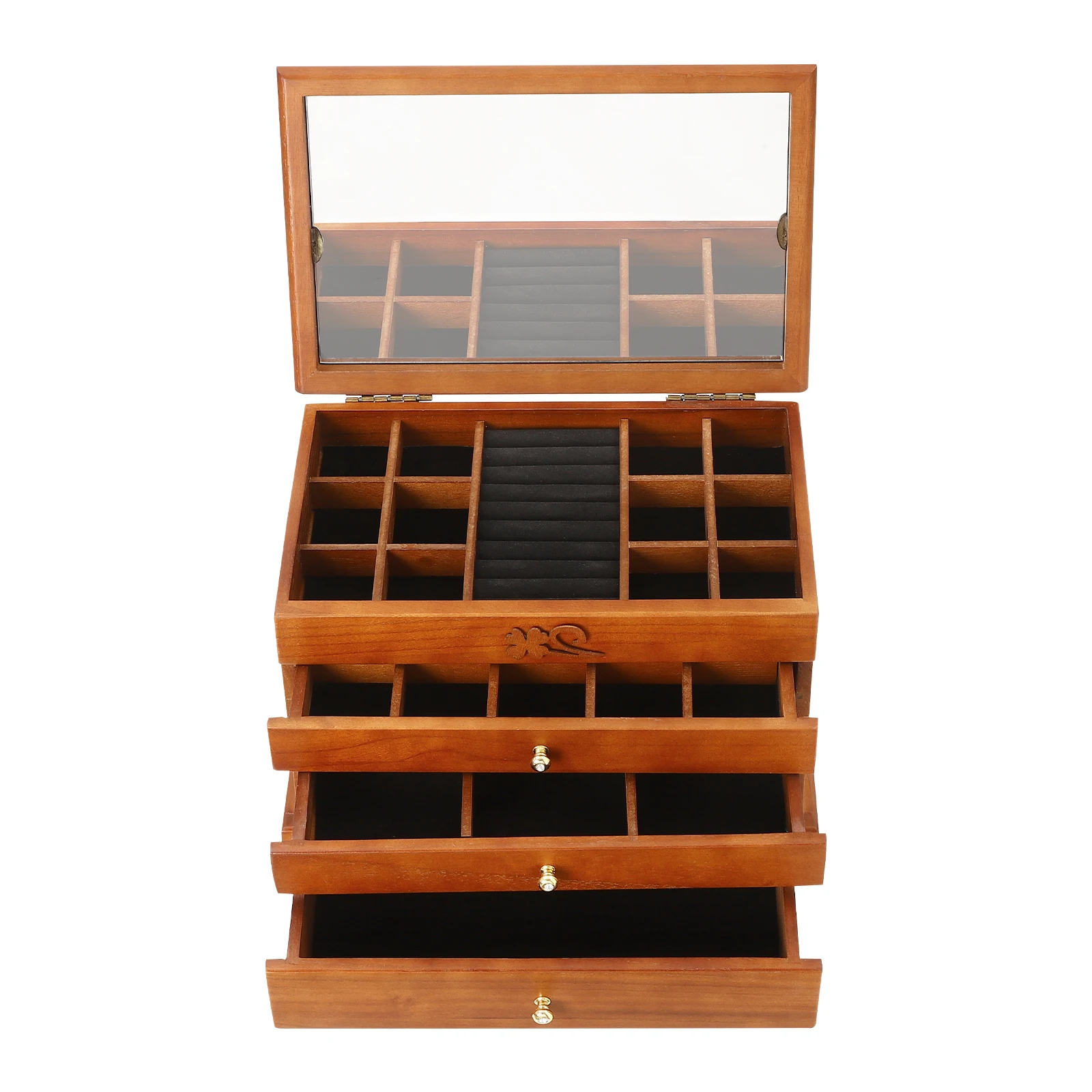 Wooden Four Layer Carved Jewelry Box, Bracelet, Ring, Earring, Jewelry Display Box